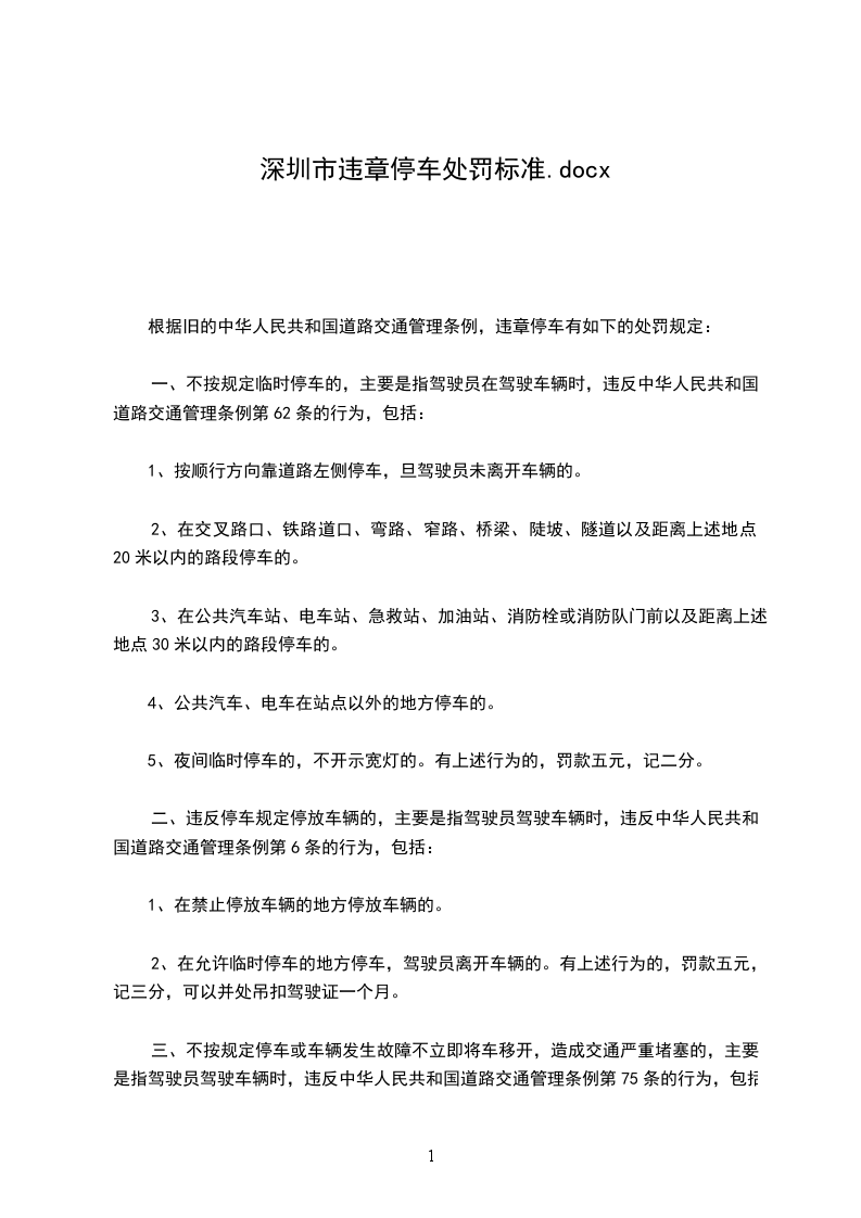 根据旧的中华人民共和国道路交通管理条例,违章停车有如下的处罚规定: