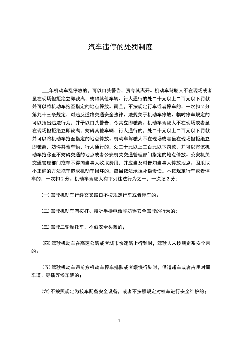 二、违反停车规定停放车辆的,主要是指驾驶员驾驶车辆时,违反中华人民共和国道路交通管理条例第6条的行为,包括: