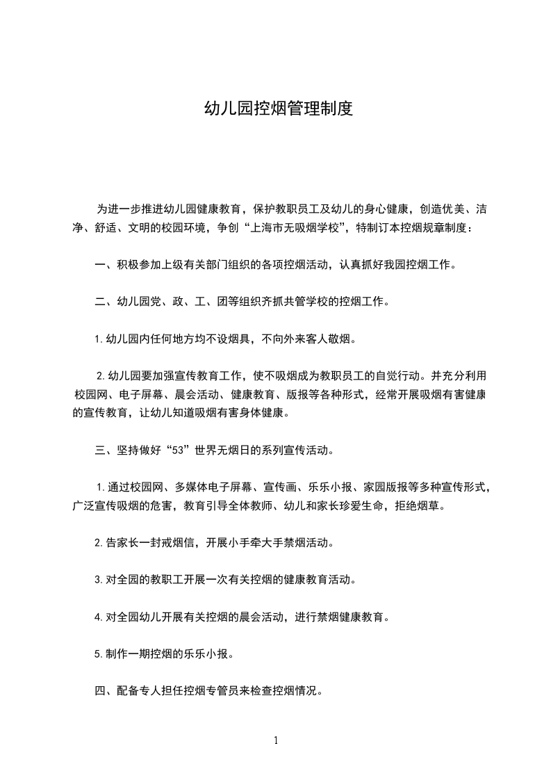 三、幼儿园内禁止吸烟。幼儿园内禁止吸烟,并设醒目标志、标牌,不设烟具。