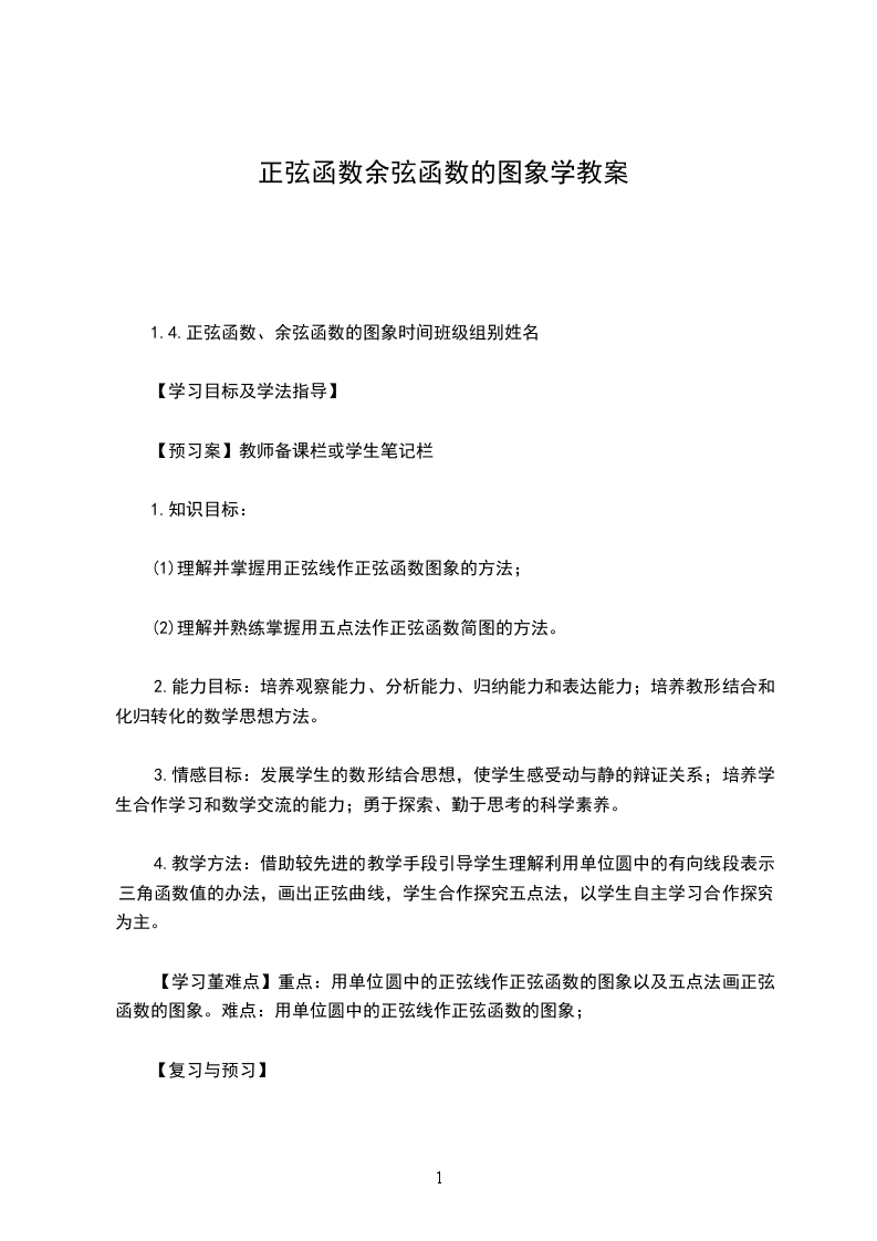 1.4.正弦函数、余弦函数的图象时间班级组别姓名
