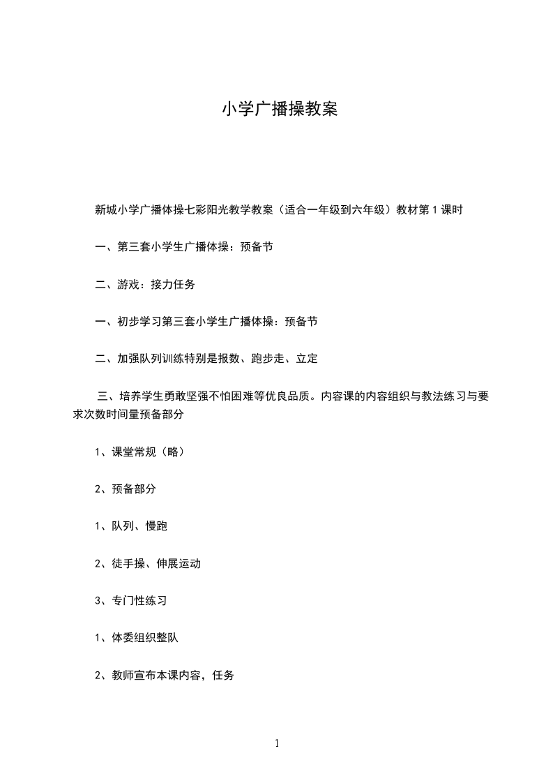 2、学生基本能熟练掌握预备节及16节广播操让学生做好准备活动,以防意外运动损伤发生。