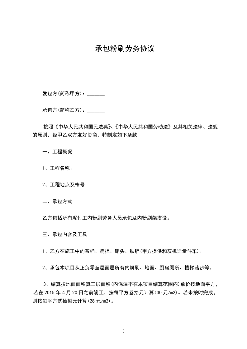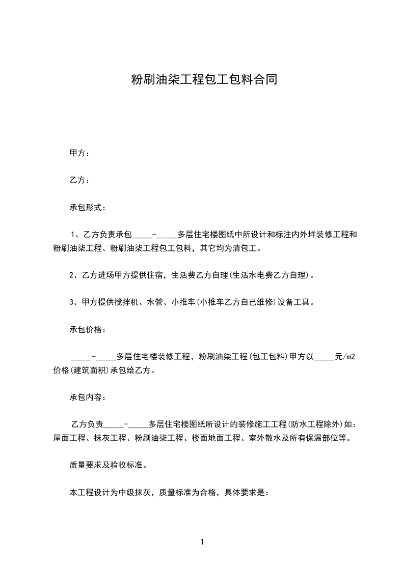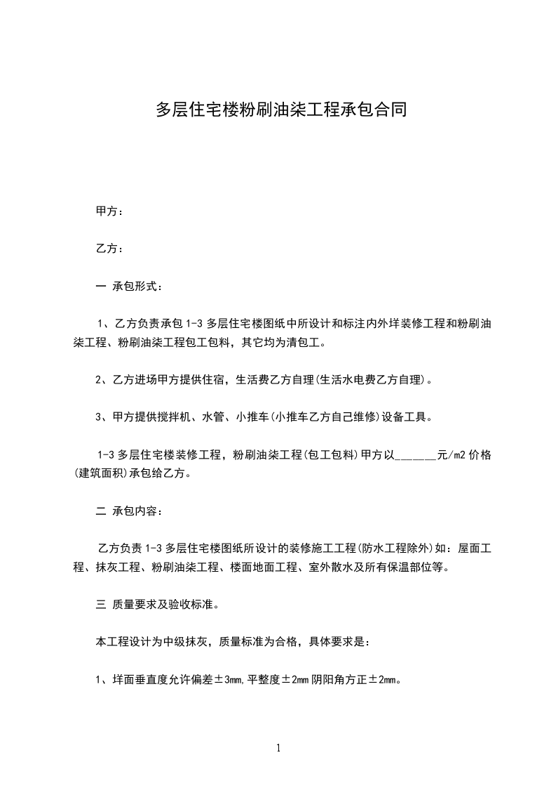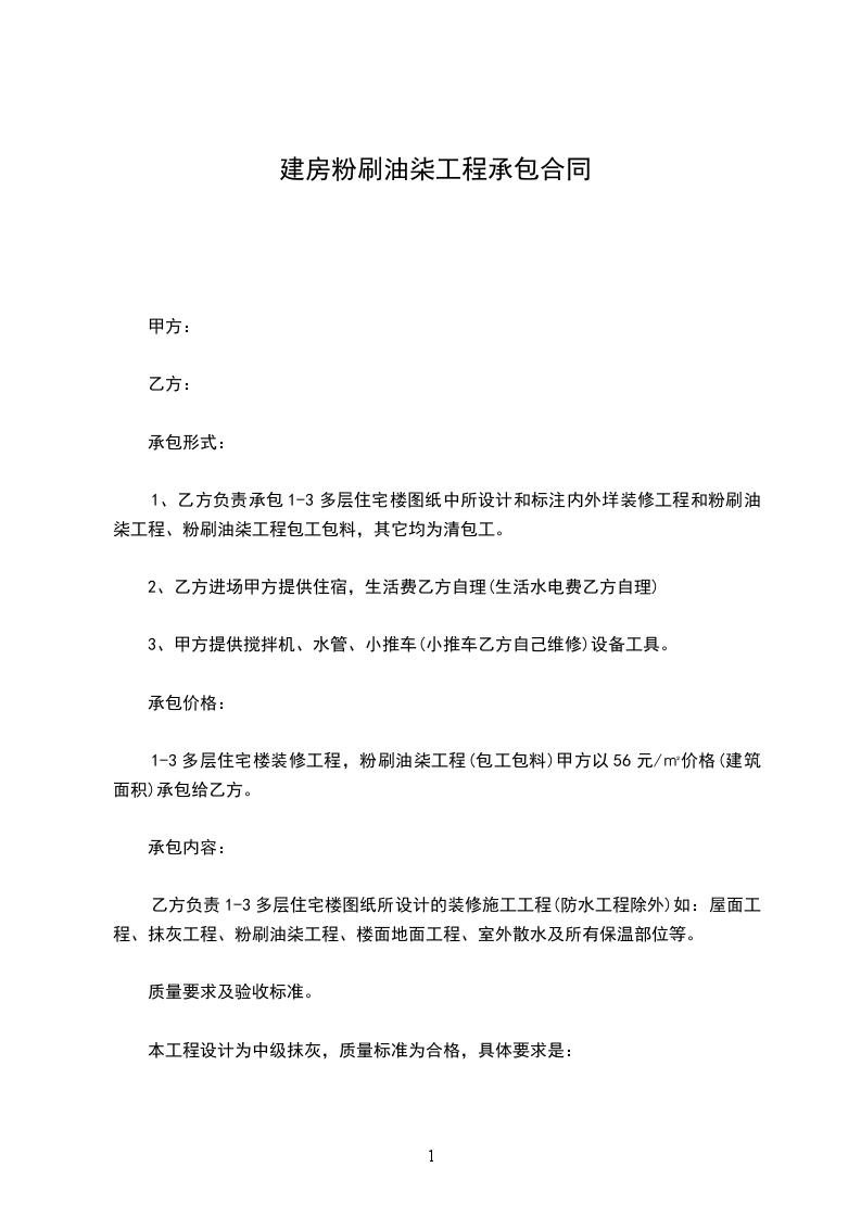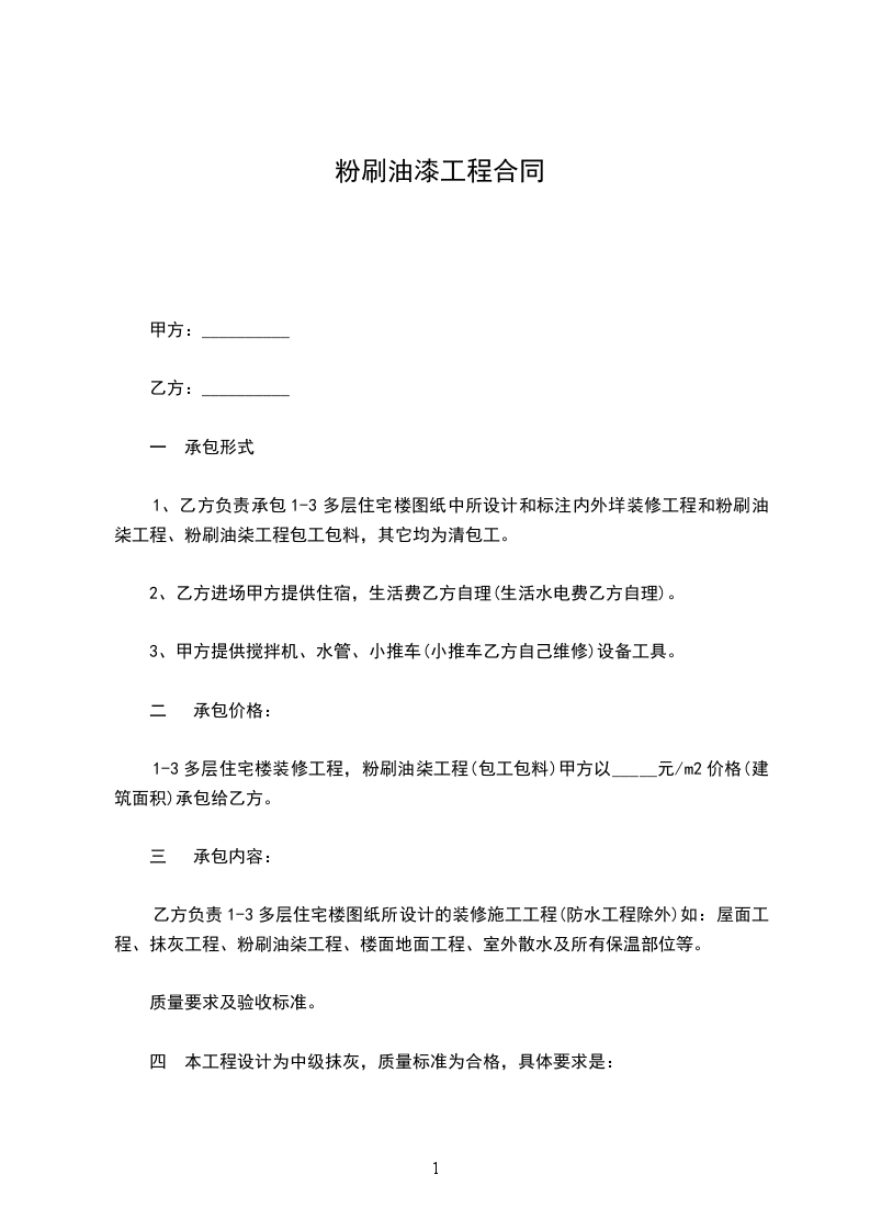 油漆工承包合同油漆工承包协议书