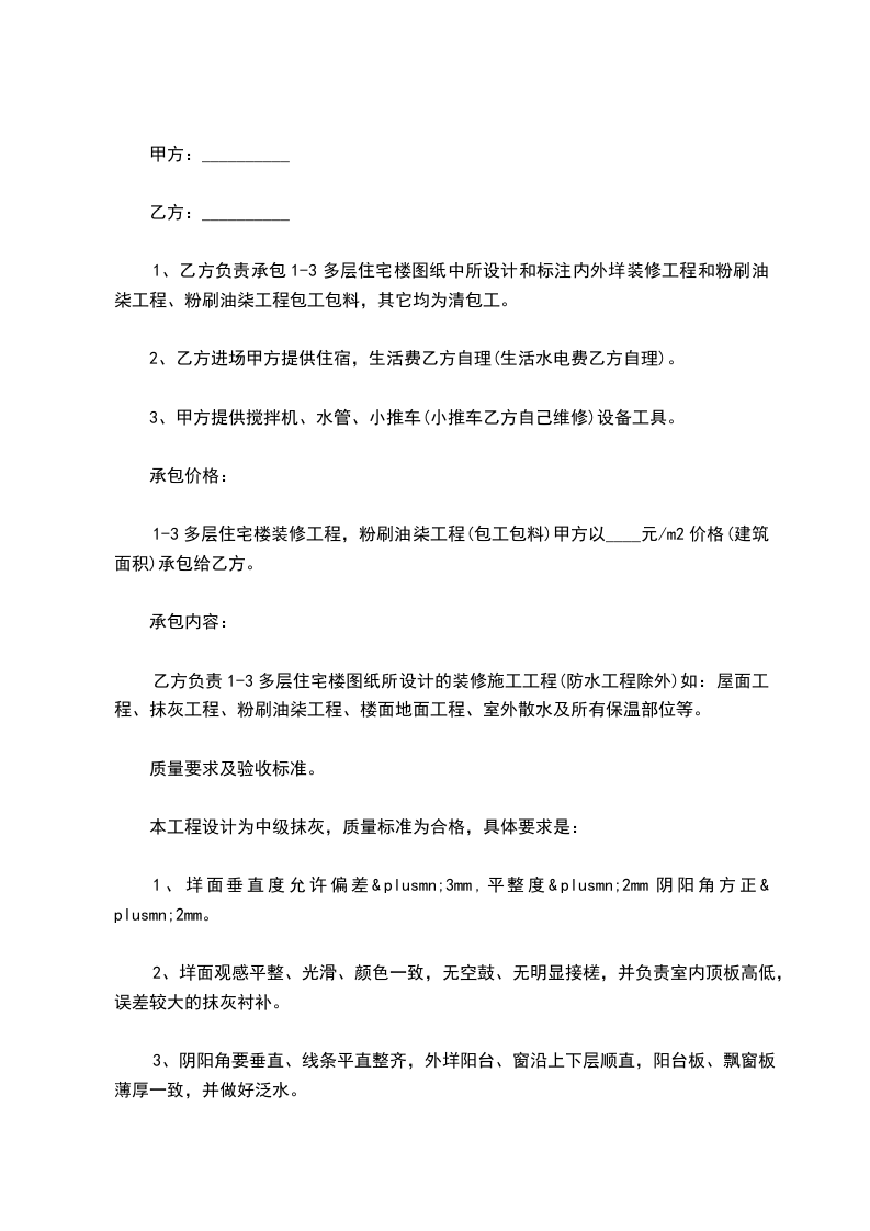 1.4承包方式:_________________□乙方包工、包全部料□乙方包工、包部分料(见附件)□乙方只包工。