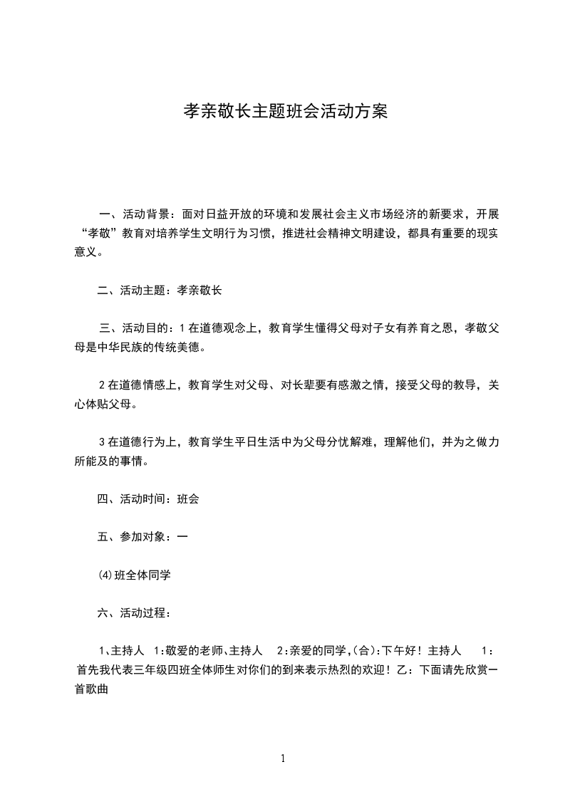 一、活动背景:面对日益开放的环境和发展社会主义市场经济的新要求,开展“孝敬”教育对培养学生文明行为习惯,推进社会精神文明建设,都具有重要的现实意义。