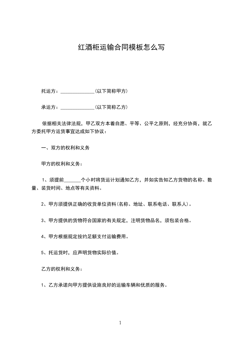 1、须提前_______个小时将货运计划通知乙方,并如实告知乙方货物的名称、数量、装货时间、地点等有关资料。