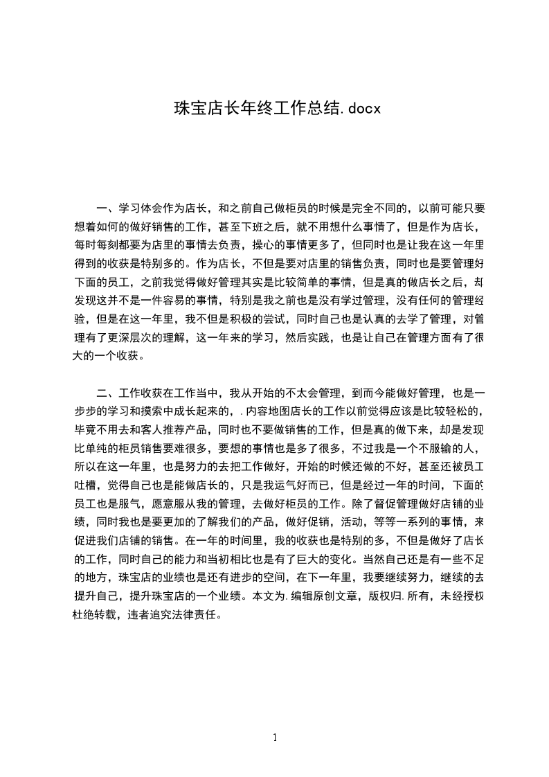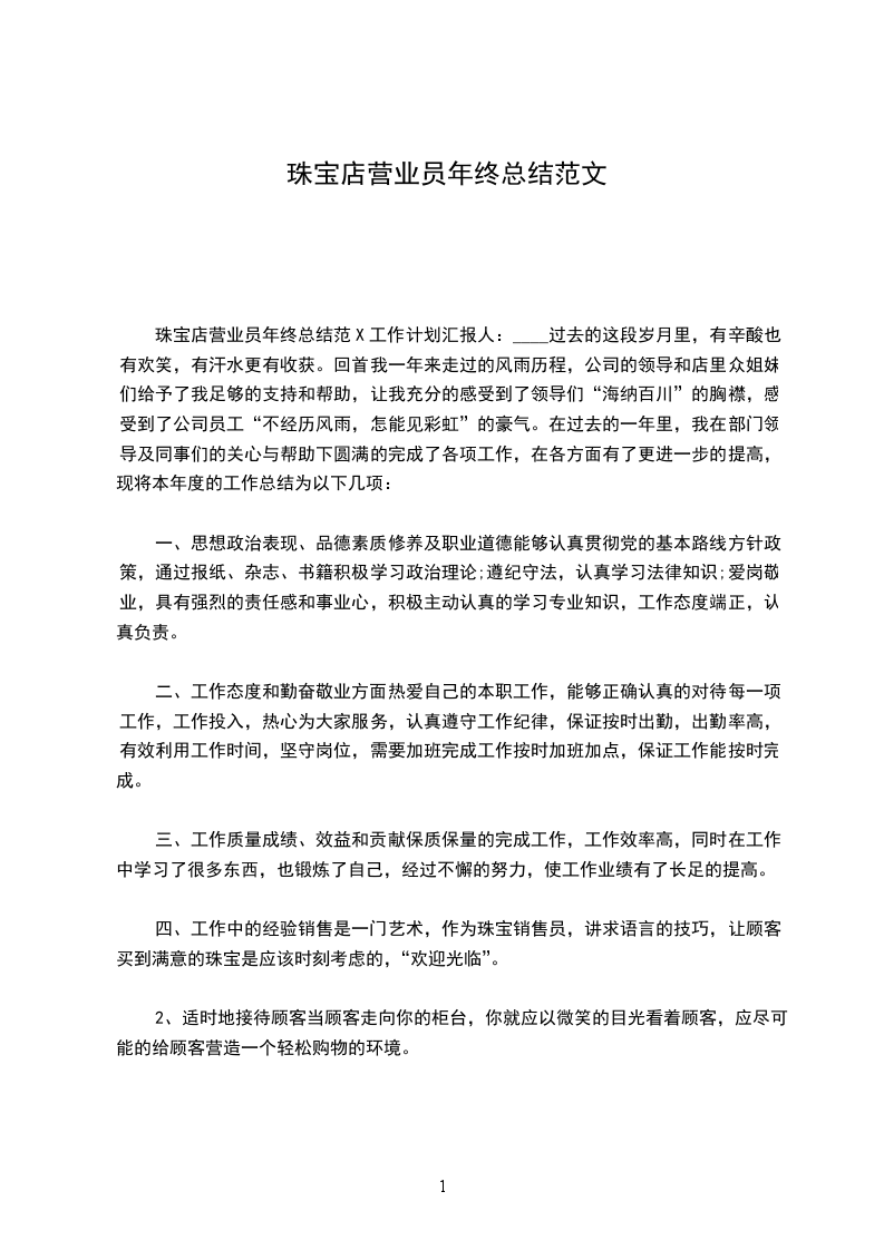 珠宝店营业员年终总结范文过去的这段岁月里,有辛酸也有欢笑,有汗水更有收获。回首我一年来走过的风雨历程,公司的领导和店里众姐妹们给予了我足够的支持和帮助,让我充分的感受到了领导们“海纳百川”的胸襟,感受到了公司员工“不经历风雨,怎能见彩虹”的豪气。在过去的一年里,我在部门领导及同事们的关心与帮助下圆满的完成了各项工作,在各方面有了更进一步的提高,现将本年度的工作总结为以下几项:一、思想政治表现、品德素质修养及职业道德能够认真贯彻党的基本路线方针政策,通过报纸、杂志、书籍积极学习政治理论;遵纪守法,认真学习法律知识;爱岗敬业,具有强烈的责任感和事业心,积极主动认真的学习专业知识,工作态度端正,认真负责。