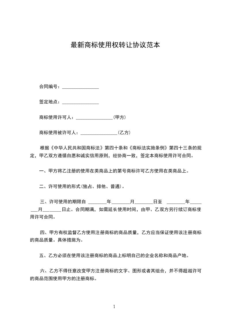 一、甲方将乙注册的使用在类商品上的第号商标许可乙方使用在类商品上。