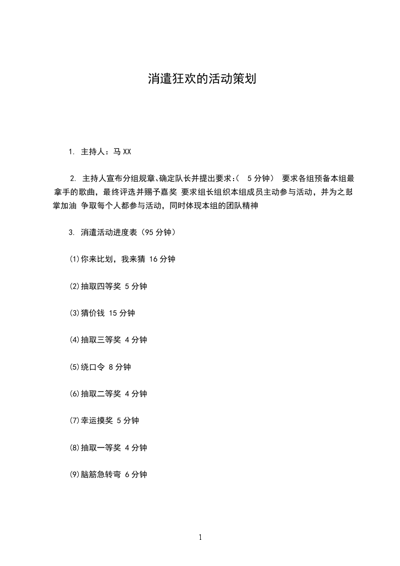 (10)抽取特等奖4分钟主持人宣布狂欢晚会结束,并建议合唱“明天会更好”活动细节(95分钟)