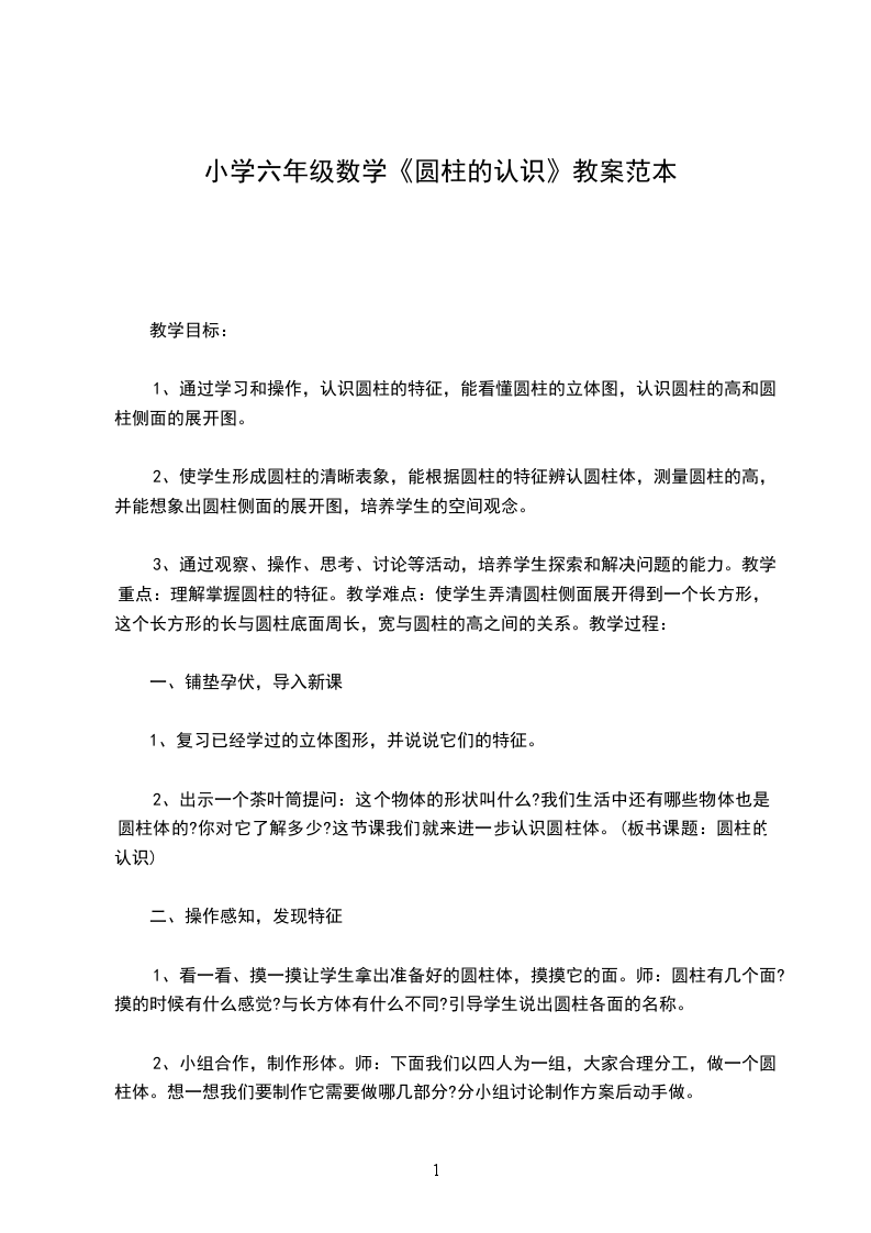 1、通过学习和操作,认识圆柱的特征,能看懂圆柱的立体图,认识圆柱的高和圆柱侧面的展开图。