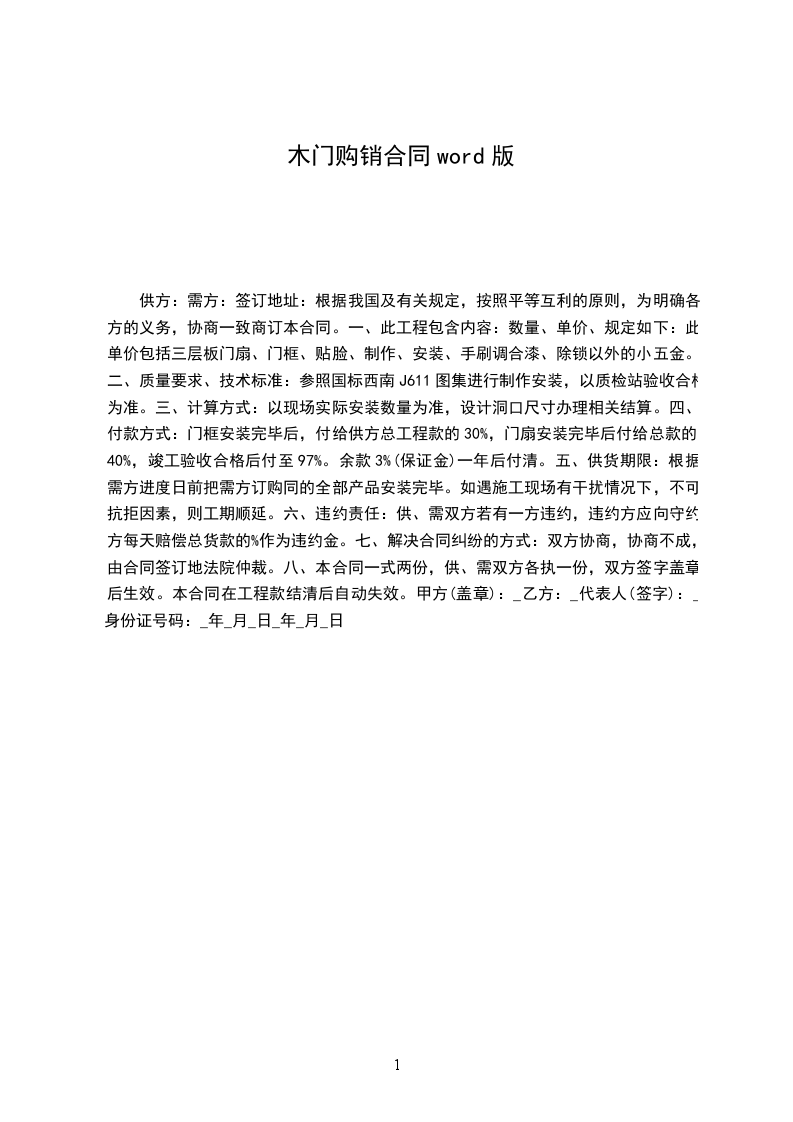 1、本合同由需。供双方签字盖章之日起具有同等法律效力。