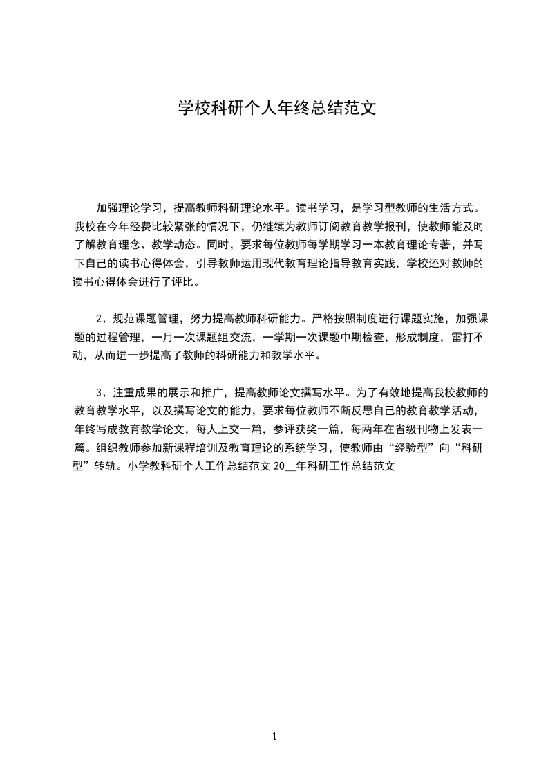 3、注重成果的展示和推广,提高教师论文撰写水平。为了有效地提高我校教师的教育教学水平,以及撰写论文的能力,要求每位教师不断反思自己的教育教学活动,年终写成教育教学论文,每人上交一篇,参评获奖一篇,每两年在省级刊物上发表一篇。组织教师参加新课程培训及教育理论的系统学习,使教师由“经验型”向“科研型”转轨。小学教科研个人工作总结范文20__年科研工作总结范文