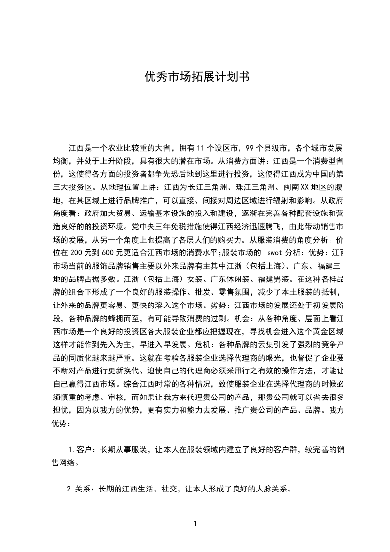 三、_工作计划第一、加大跑市场力度。市场是跑出来的,客户是引进来的。那么,怎么跑市场?一是领导重视。领导重视就是压力,压力转化为动力,可以增强业务人员主动跑市场的积极性,把跑市场变成一个常态性的工作,变被动为主动。领导重视就是支持,支持就能建立自信,树立必胜的信心。二是建立健全有效的奖惩制度。有效的奖励制度可以有效的提升员工对企业价值的认同,树立对企业的忠诚,以便在此基础上实现其人生价值。合理的惩罚制度可以规范其行为,提升责任心,激发反省能力,对不正确的价值和观念进行改正,提升自我能力。三是明确市场方向。跑市场不能盲目,要根据需求有目的性和针对性的寻找客户资源。要分析自身特点、客户需求、市场动态(范本)。增强分析市场、研究市场、把握市场的能力。第二,明确主营业务,开办专业市场主营业务指企业为完成其经营目标而从事的日常活动中的主要活动,是企业收入的主要来源。首先,结合自身特点,明确主营业务。_公司、襄阳分公司为城市仓库,具有较强的装卸能力和快速交通通道,适合大宗商品物流和城市快销品作业。孝感XX公司具备棉花期货交割资质和多年棉花管理经验,适合以棉花期货交割和收储为主,发展化工产品和烟叶收储。宜昌XX公司在集装箱业务上积累了不少经验,可以把集装箱业务打造成主营业务,逐步优化收储种类。各物流部也要结合当前的主营业务,充分发挥成品油、烟叶和种子储备的管理优势,及专用线的特有资产优势,固化主营业务,拓展适合自身的特种业务。在明确主营业务同时,要打造一些有特色的专业市场,如棉花期货交割市场,集装箱业务市场,大型钢材交易市场,城市快销品市场,种子收储、加工市场,竹木交易、加工市场等等