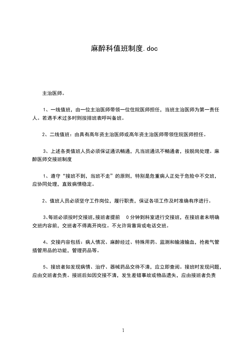 3、上述各类值班人员必须保证通讯畅通,凡当班通讯不畅通者,按脱岗处理。麻醉医师交接班制度
