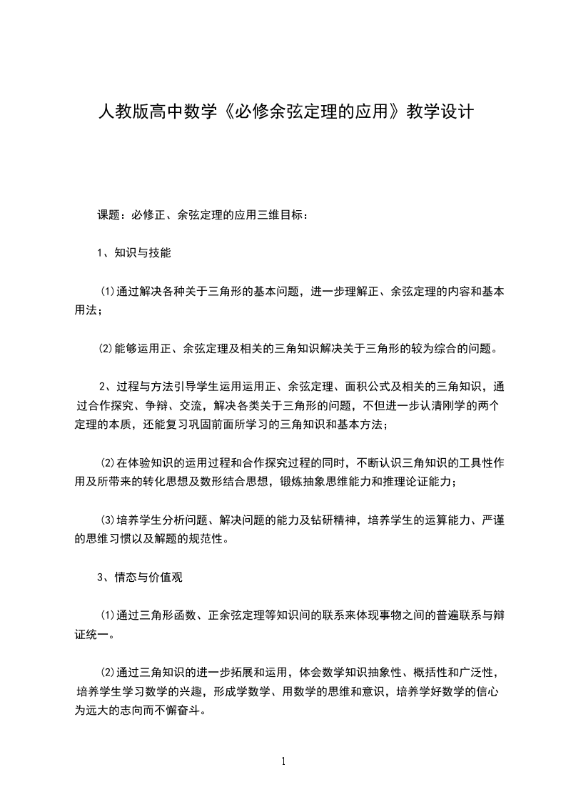 (1)通过解决各种关于三角形的基本问题,进一步理解正、余弦定理的内容和基本用法;