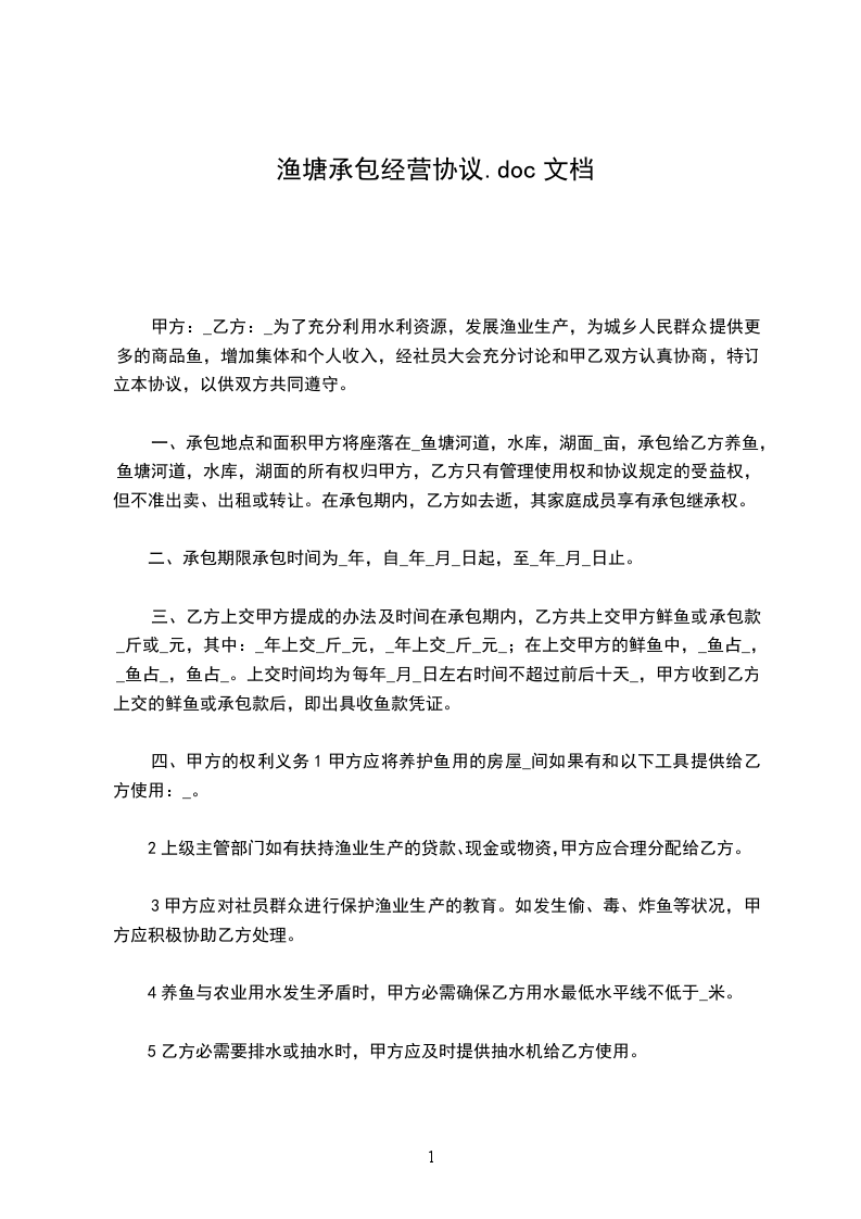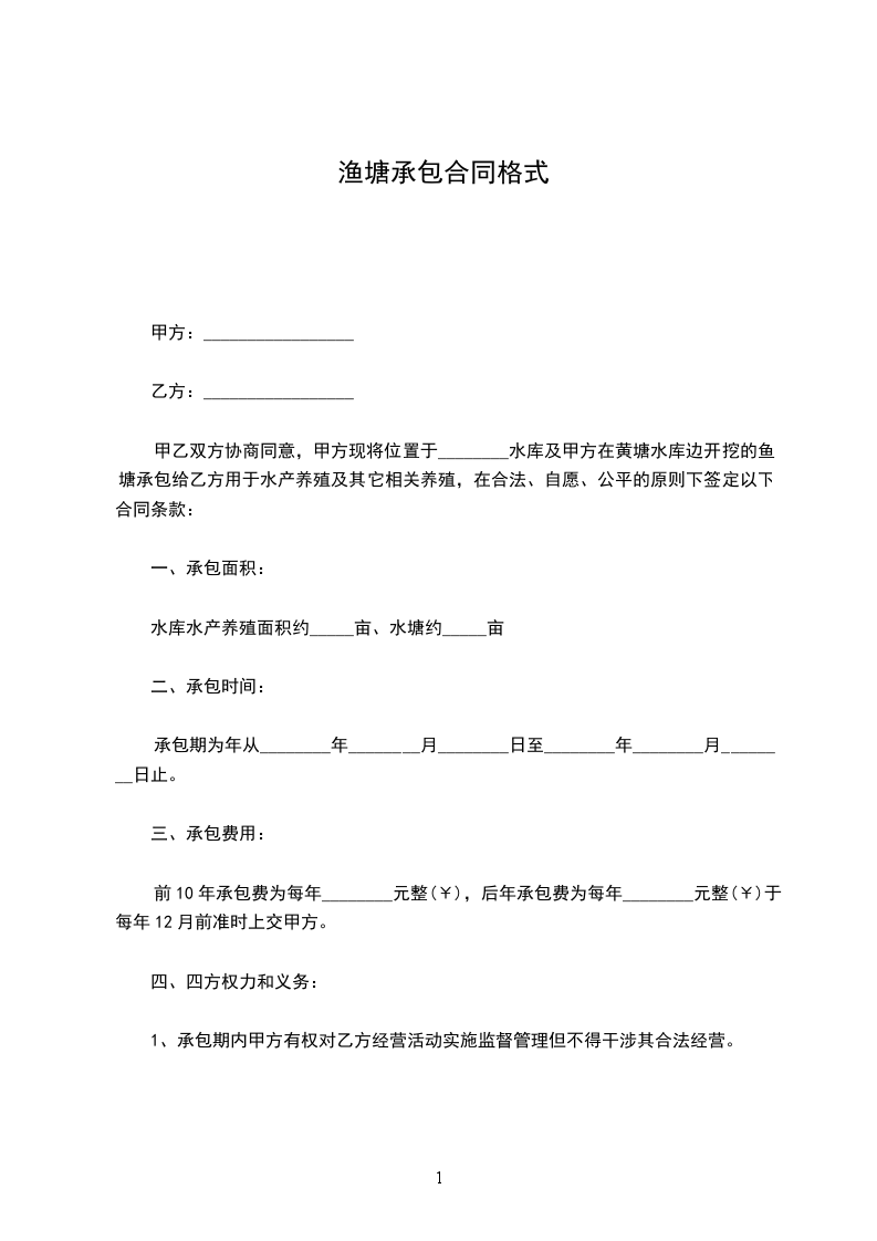 4、承包期间甲方有义务维护乙方在水库、水塘的合法养殖活动,因甲方原因或甲方原承包合同的问题导致乙方不能水库水面及鱼塘进行正常合法的养殖活动时,甲方应及时出面解决、如导致乙方不能继续养殖的,甲方应赔偿乙方的养殖损失。