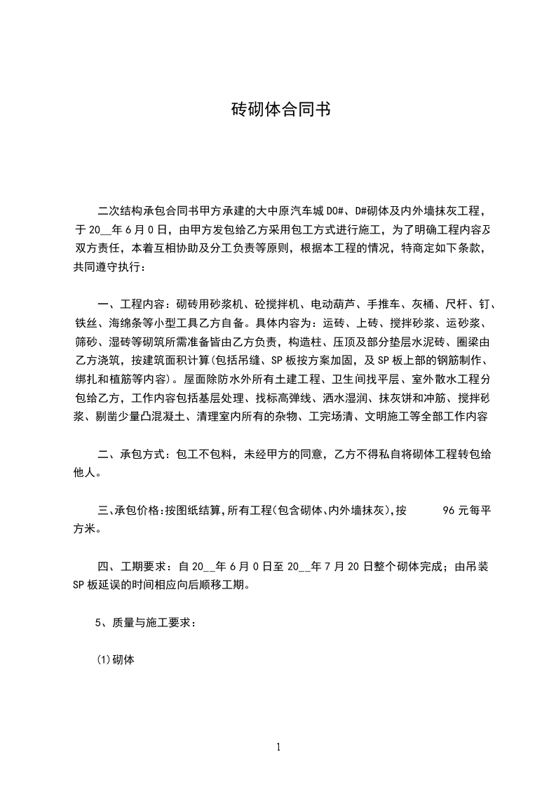 东原时光道一期工程砖砌体专项施工方案编制人:审核人:编制单位:中XX公司.砖砌体施工方案