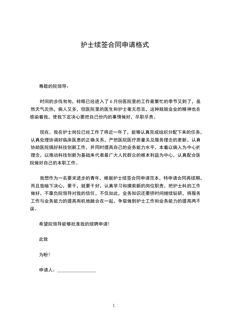 我想作为一名要求进步的青年,根据护士续签合同申请范本,特申请合同再续期,而且我暗下决心,要干,就要干好,认真学习和摸索新的岗位职责,把护士科的工作做好,不辜负院领导对我的信任,不仅如此,业务知识还要挤时间继续钻研,将服务工作与业务能力的提高有机地融合在一起,争取做到护士工作和业务能力的提高两不误。