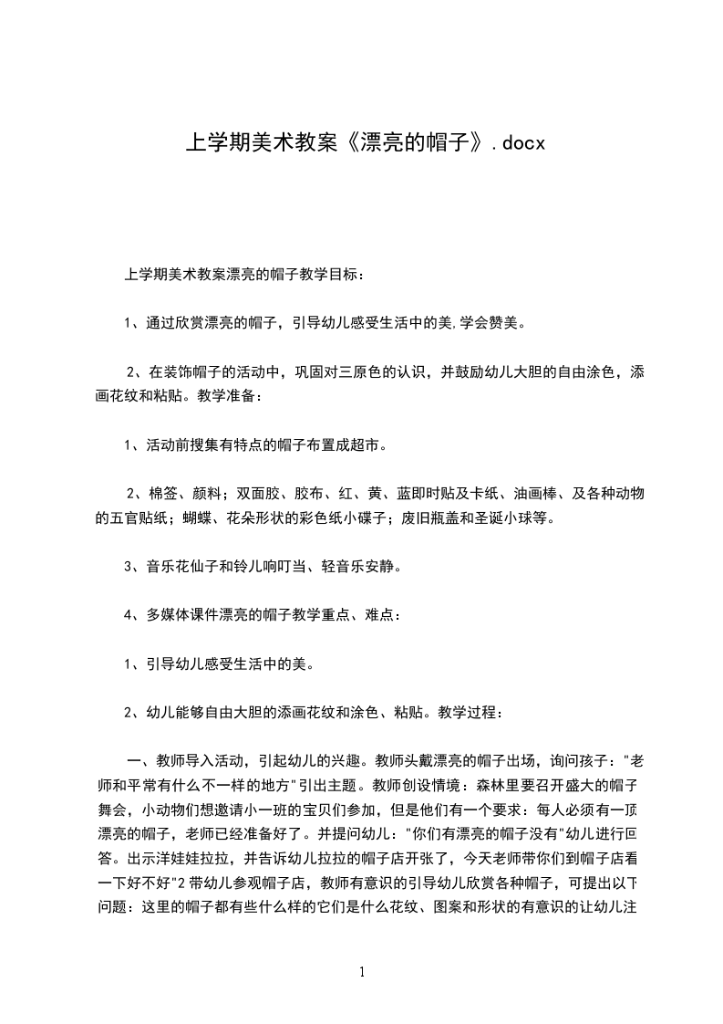 中班美术教案漂亮的草帽含反思中班美术教案漂亮的草帽含反思适用于中班的美术主题教学活动当中,让幼儿体验装饰绘画的快乐并对美术活动产生浓厚兴趣,感受草帽美丽的图案与色彩,并用绘画的方式进行装饰,根据色彩进行大胆合理的想象,快来看看幼儿园中班美术漂亮的草帽含反思教案吧。