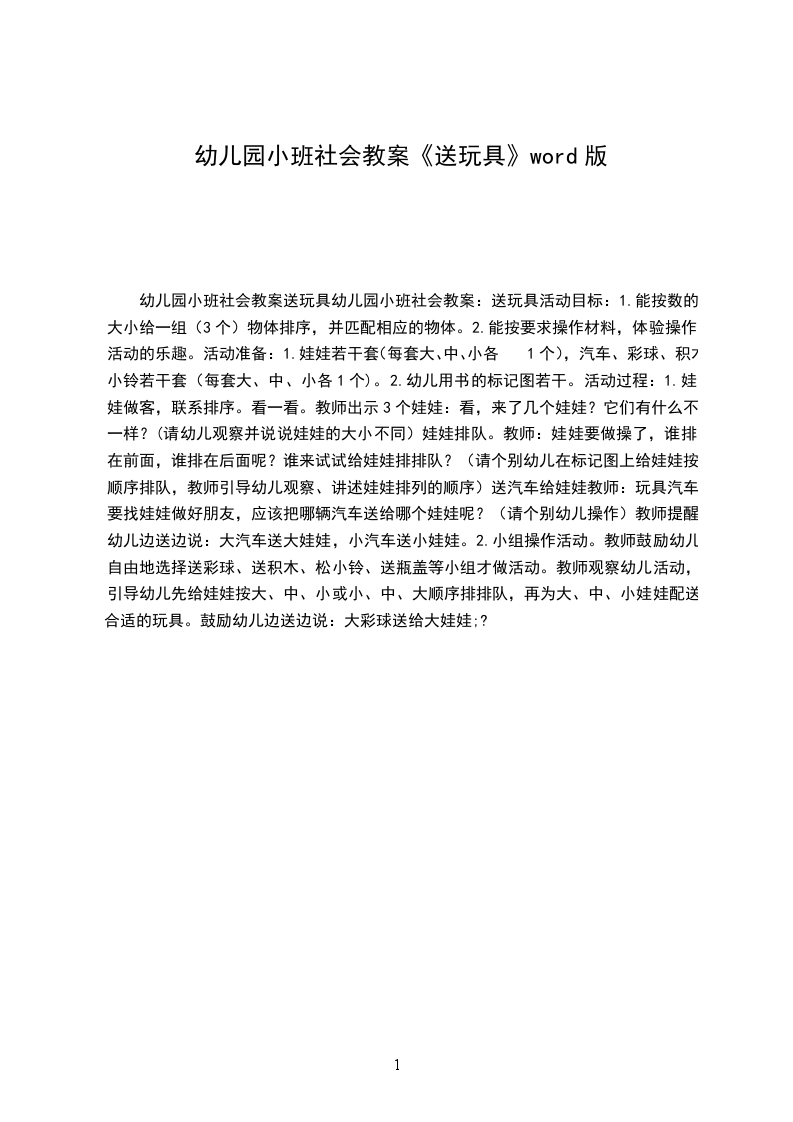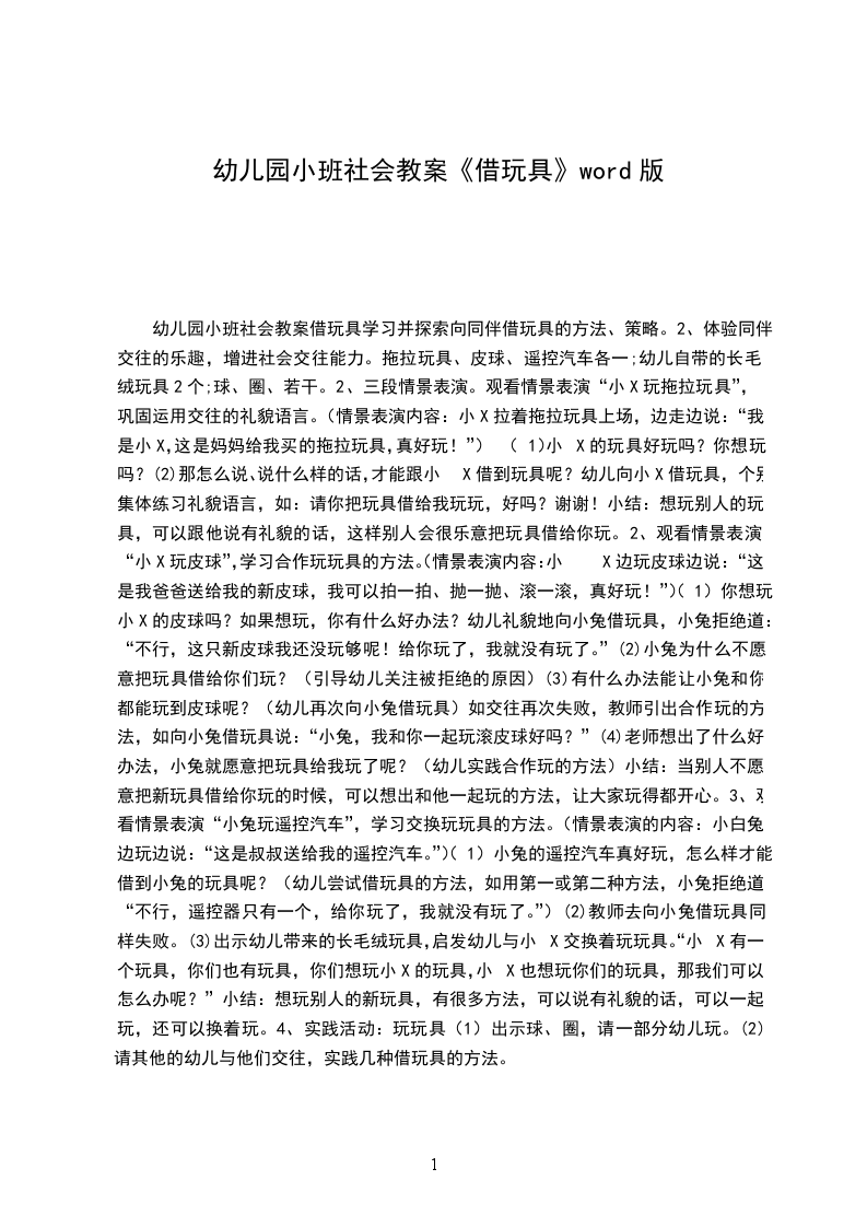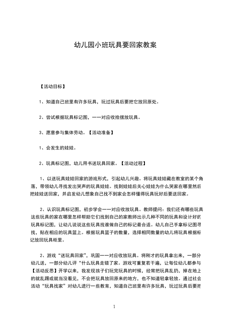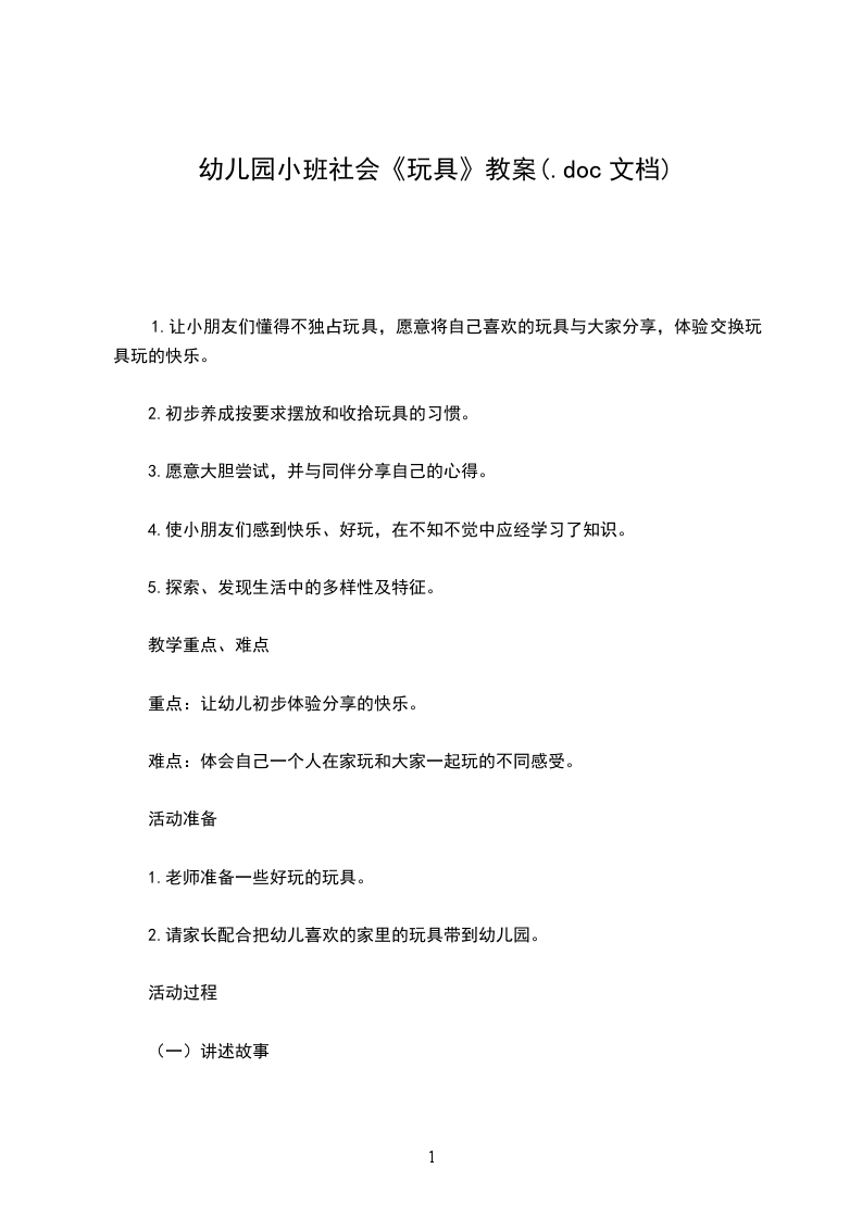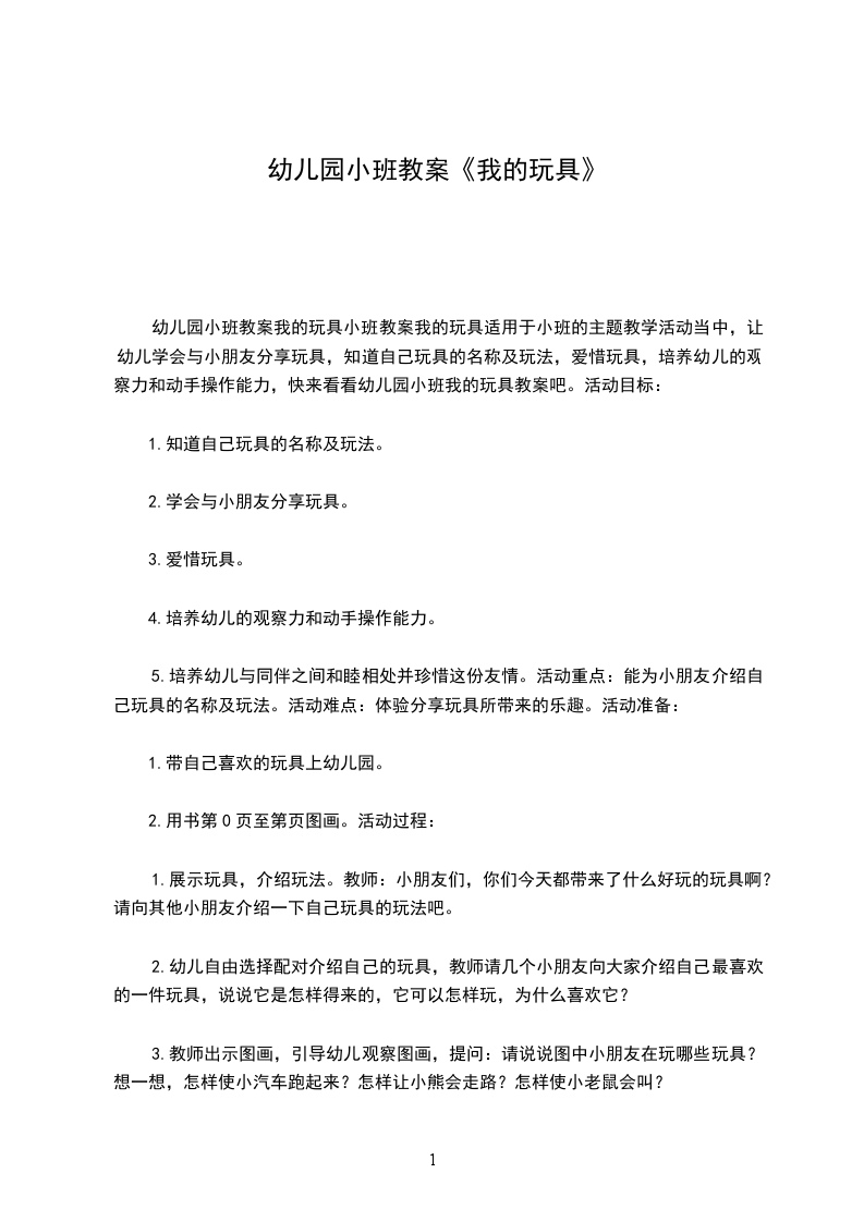5.培养幼儿与同伴之间和睦相处并珍惜这份友情。活动重点:能为小朋友介绍自己玩具的名称及玩法。活动难点:体验分享玩具所带来的乐趣。活动准备: