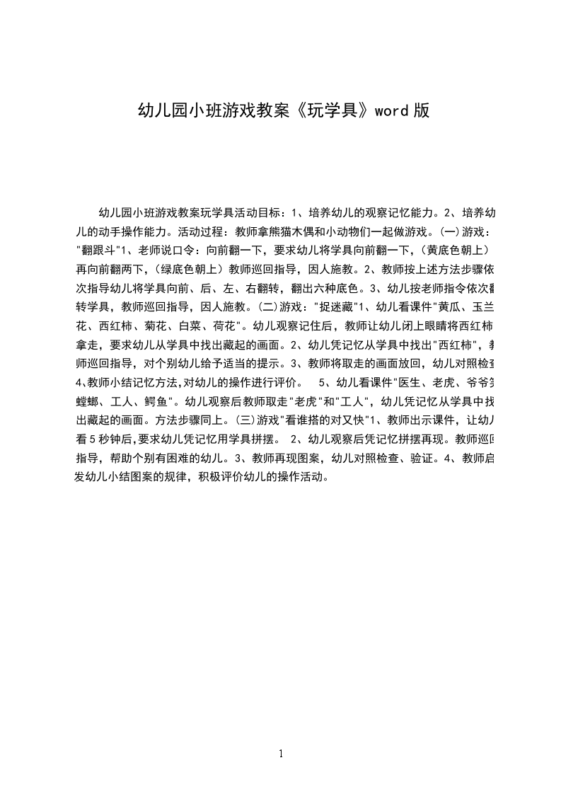 1.知道自己玩具的名称及玩法。