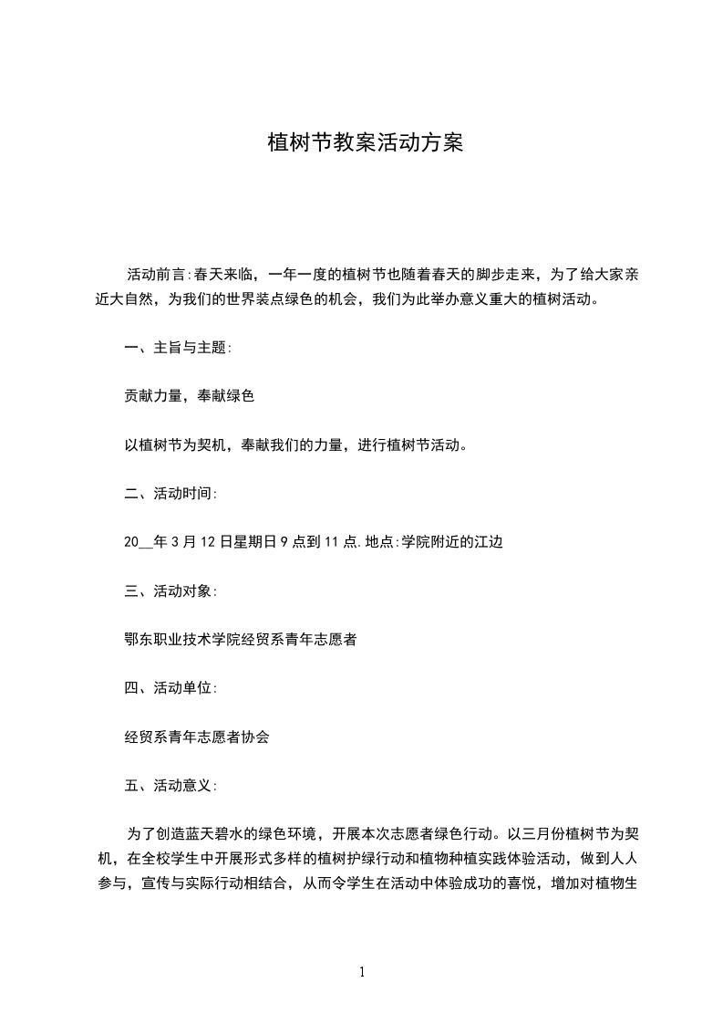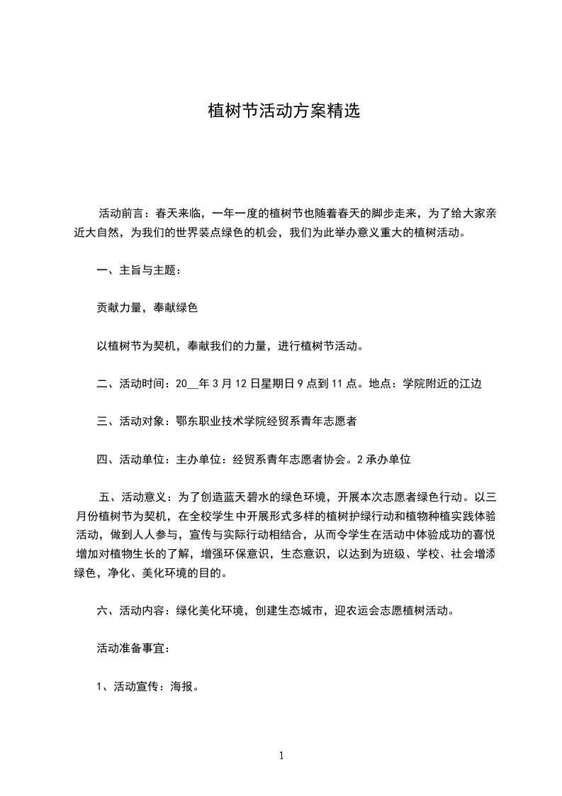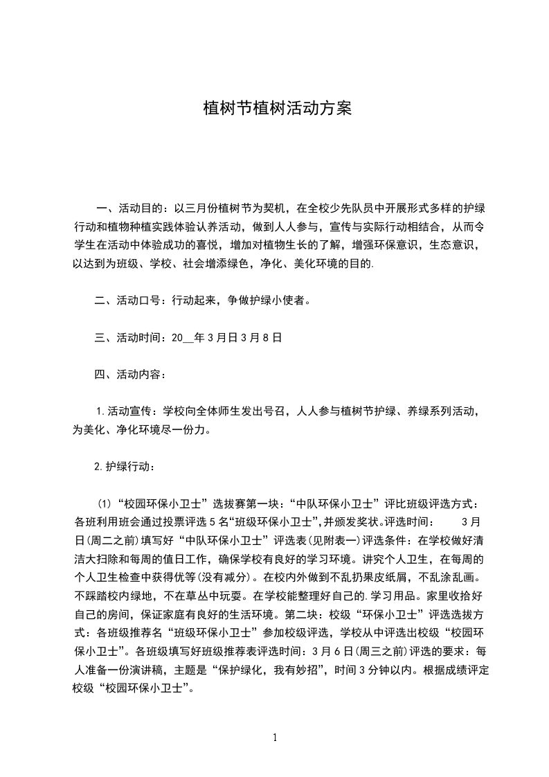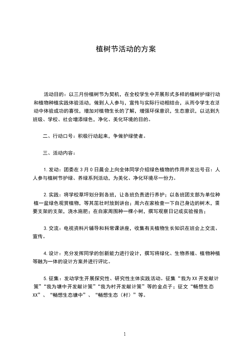 一、活动动背景及目的、活动背景绿色是生命的源泉,绿色是生命的希望。一年一度的植树节又和我们相遇,再次焕发了我们心中的朝气。植树节是我们爱护环境,保护环境的一个方式,这个活动有益于提高对环境保护的意识和提供给我们爱护环境的措施。让我们携起手来绿化环境,绿化我们的校园,使我们生活在美丽的天空下,清新的环境中。