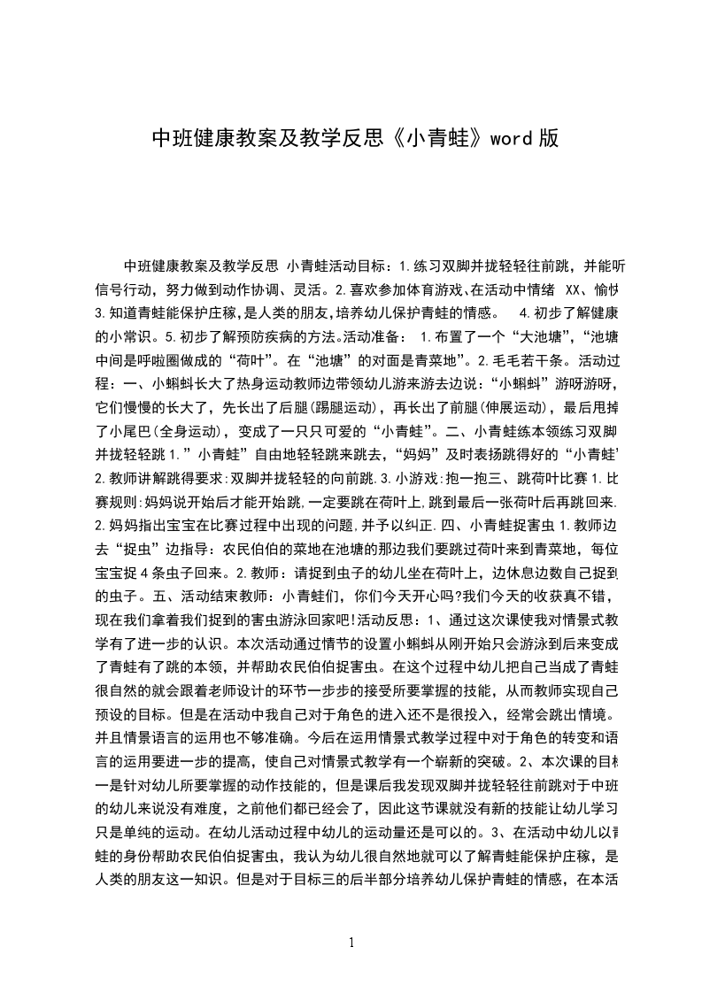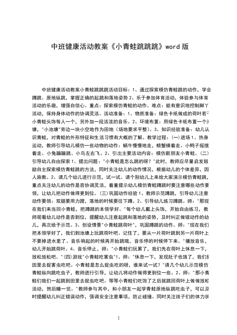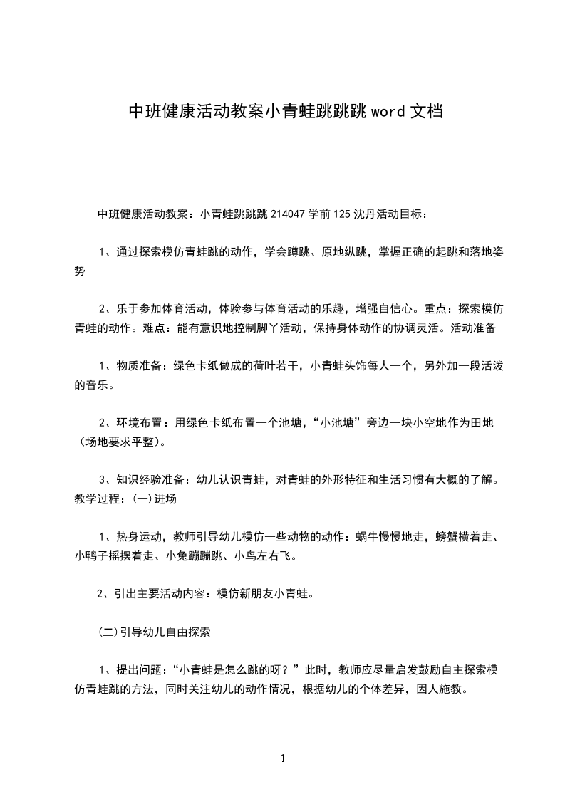 中班健康活动教案:小青蛙跳跳跳214047学前125沈丹活动目标: