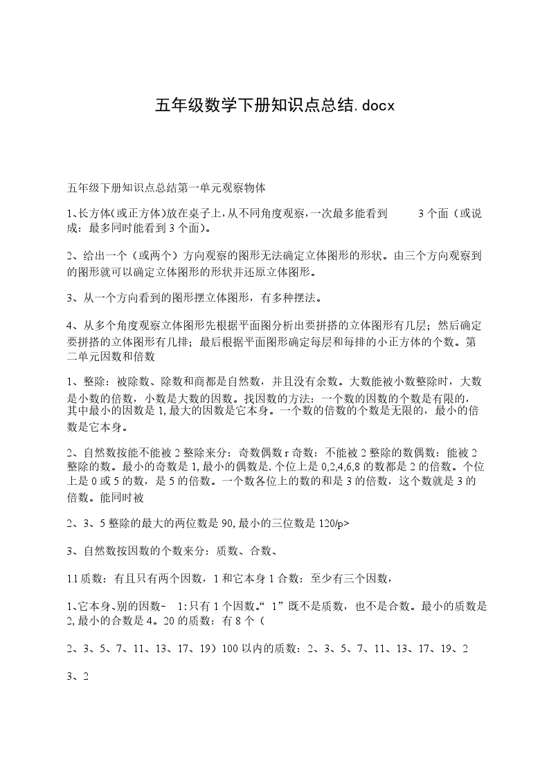(5)一个数的倍数的个数是无限的,一个数的约数的个数是有限的。一个数的最小倍数和最大约数都是自身。