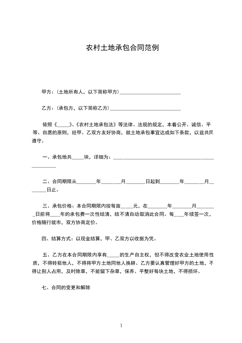 依照《_____》、《农村土地承包法》等法律、法规的规定,本着公开、诚信、平等、自愿的原则,经甲、乙双方友好协商,就土地承包事宜达成如下条款,以兹共同遵守。