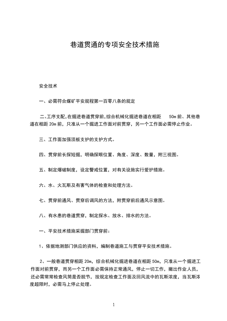 一、概况:综掘巷道现已进至m,为确保工作面掘进施工安全,遵照“预测预报、有疑必探、先探后掘、先治后采”的防治水原则,完善“防、堵、疏、排、截”五项水害治理措施,特编制如下探放水安全技术措施。