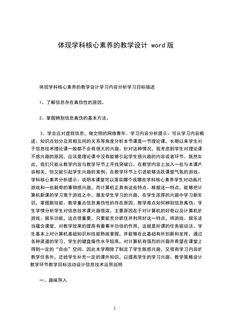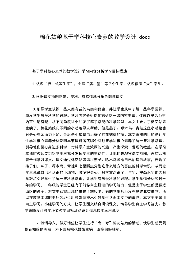 2.正确、流利地朗读课文。提示生字音、形、义的联系,帮助学生牢固地掌握字形。学生学情分析本篇是童话,内容浅显易懂,又配有插图,它借助乌鸦喝水这件事,告诉学生无找、论遇到什么困难,只要肯动脑筋,就能解决问题的办法。根据一年级孩子的年龄特点,教师要创设良好的情境,激发学生的学习兴趣,使学生在情境中学习语文知识、感知理解课文,_从而锻炼语文能力,提高语文素养。教学环节教学策略设计教学目标活动设计信息技术运用说明_