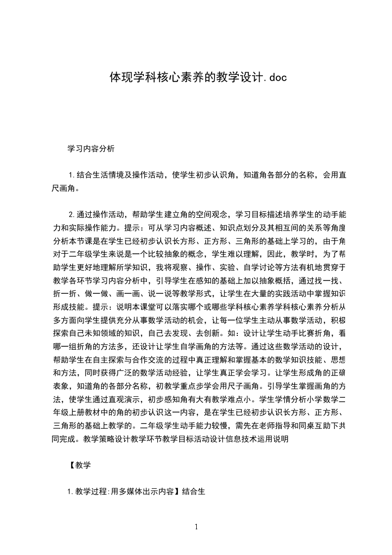 体现学科核心素养的教学设计学习内容分析学习目标描述学习内容分析学科核心素养分析教学重点教学难点