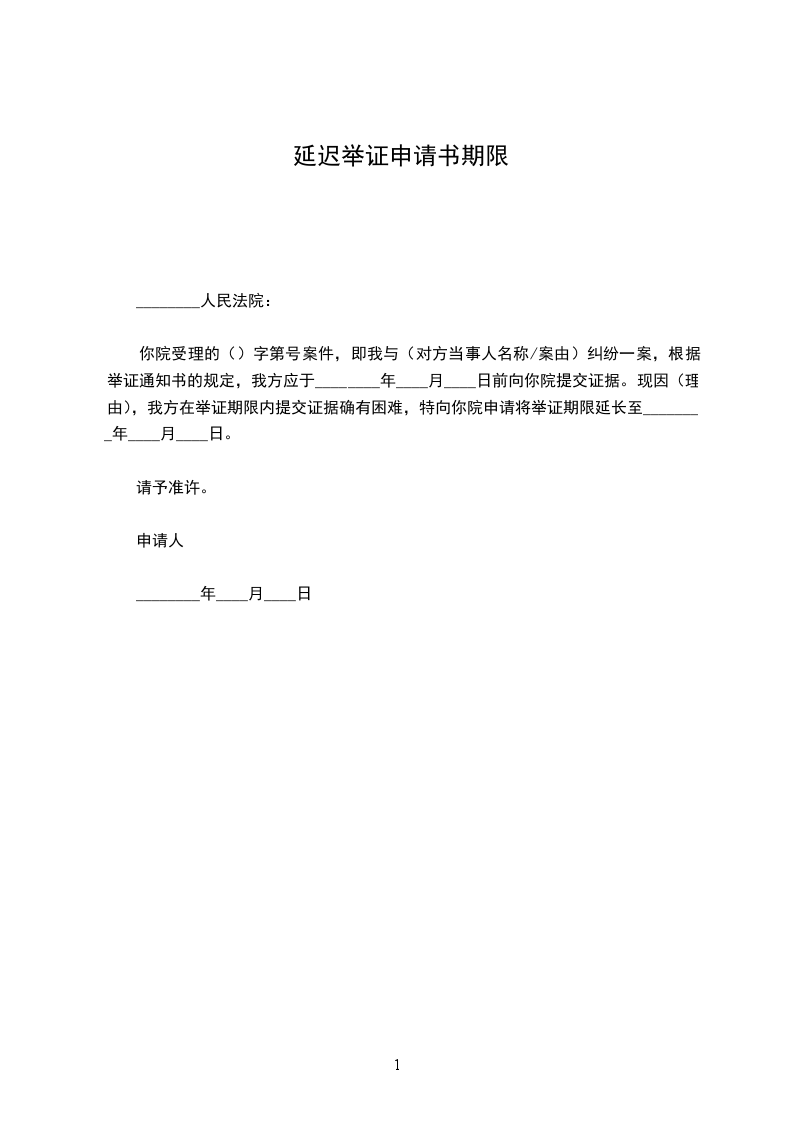 你院受理的()字第号案件,即我与(对方当事人名称/案由)纠纷一案,根据举证通知书的规定,我方应于________年____月____日前向你院提交证据。现因(理由),我方在举证期限内提交证据确有困难,特向你院申请将举证期限延长至________年____月____日。