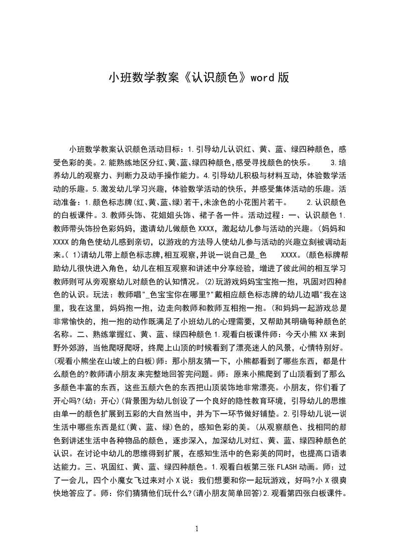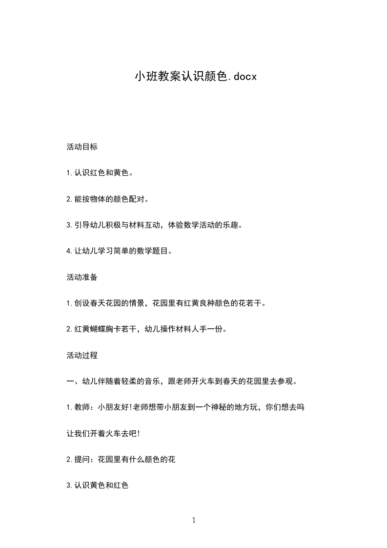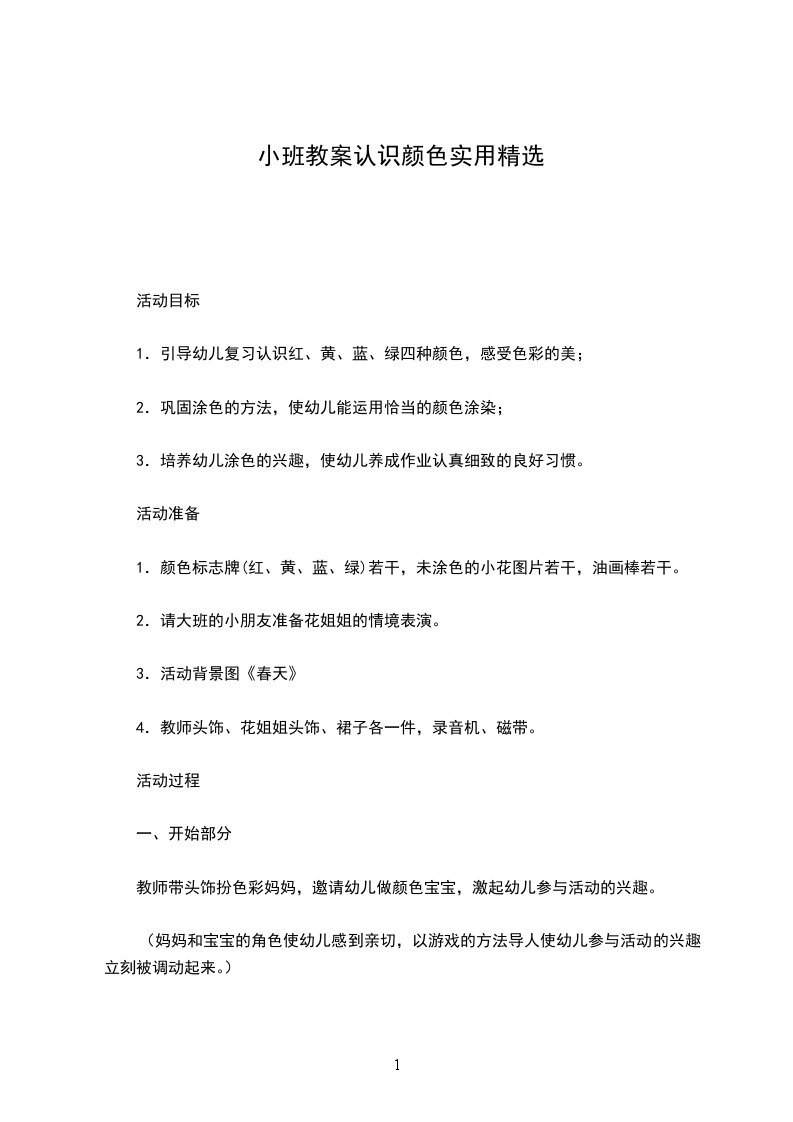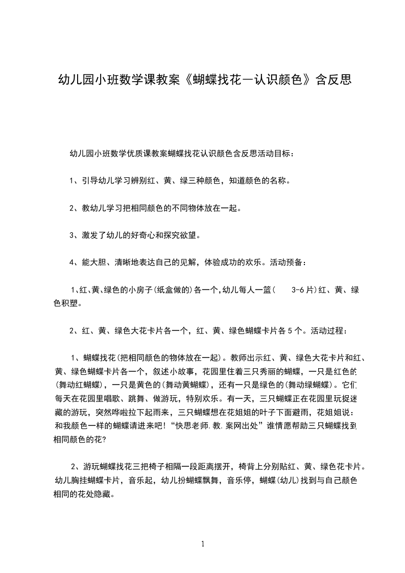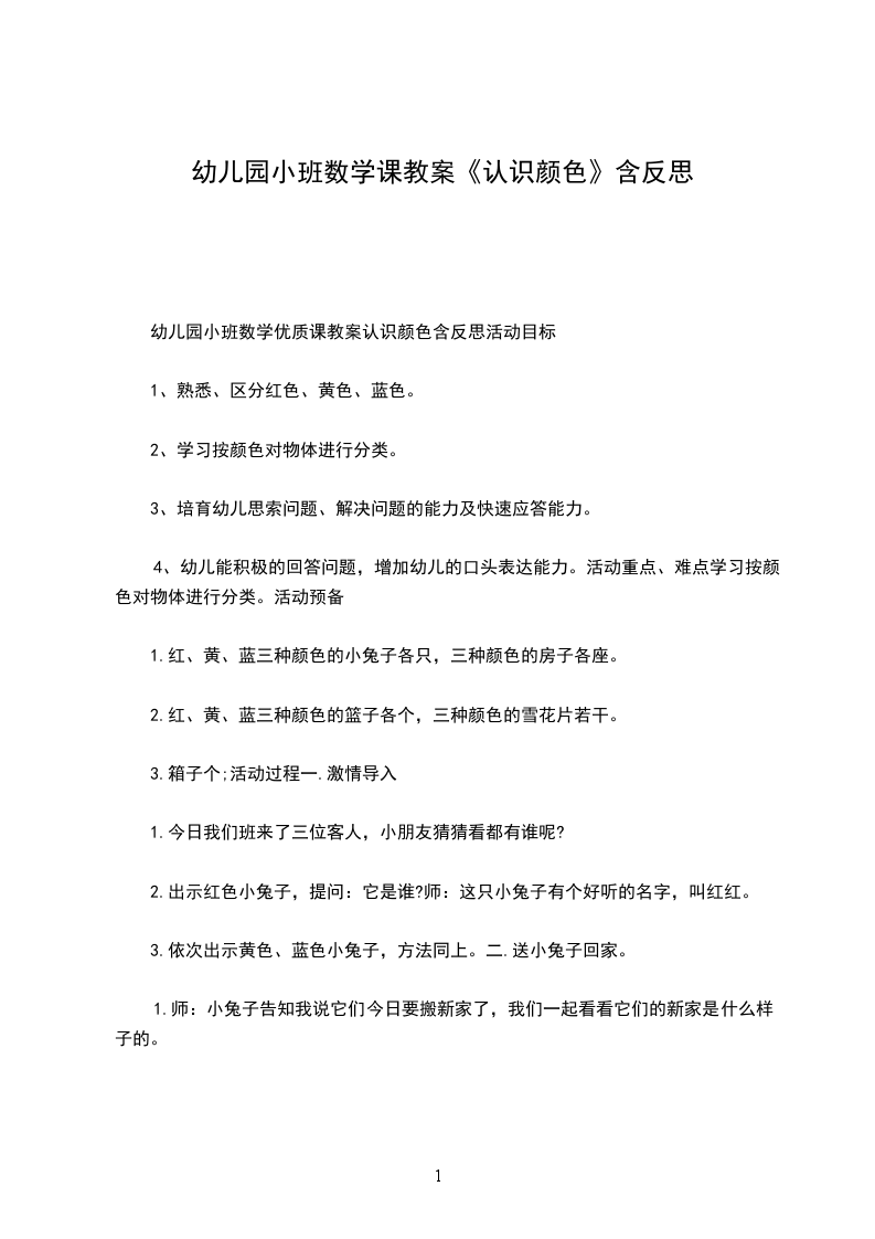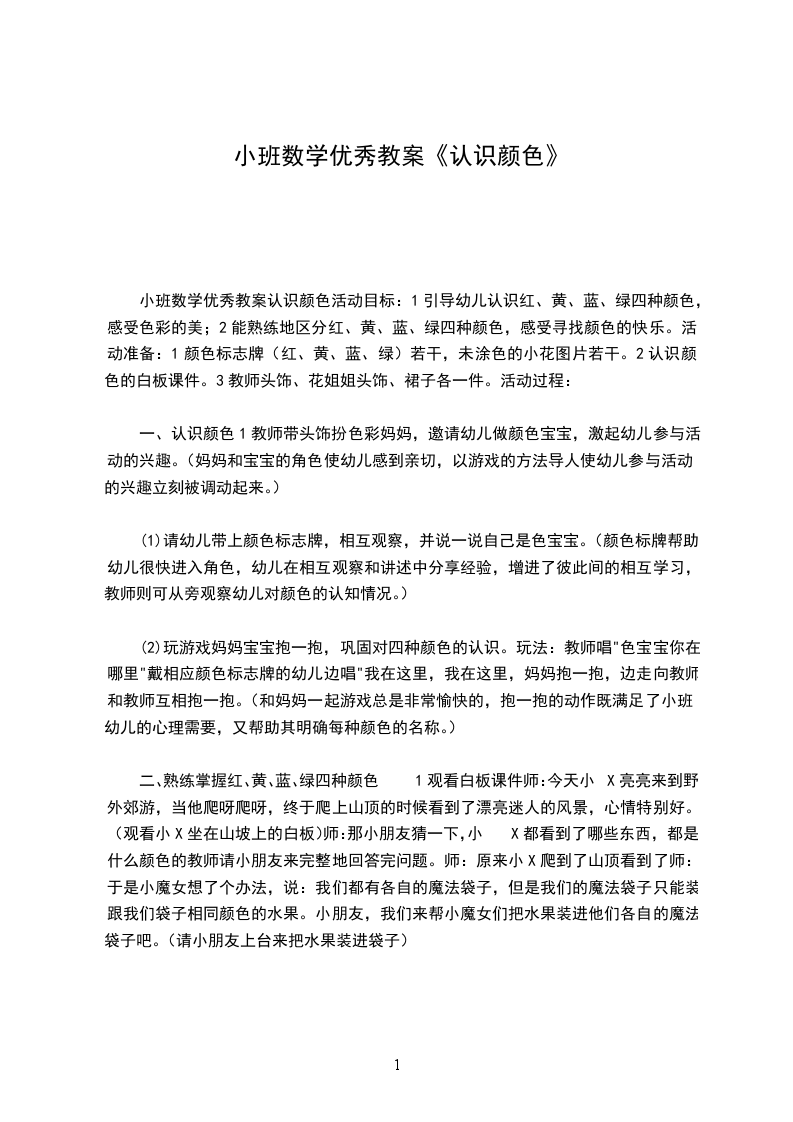 幼儿园小班数学优质课教案认识颜色含反思活动目标