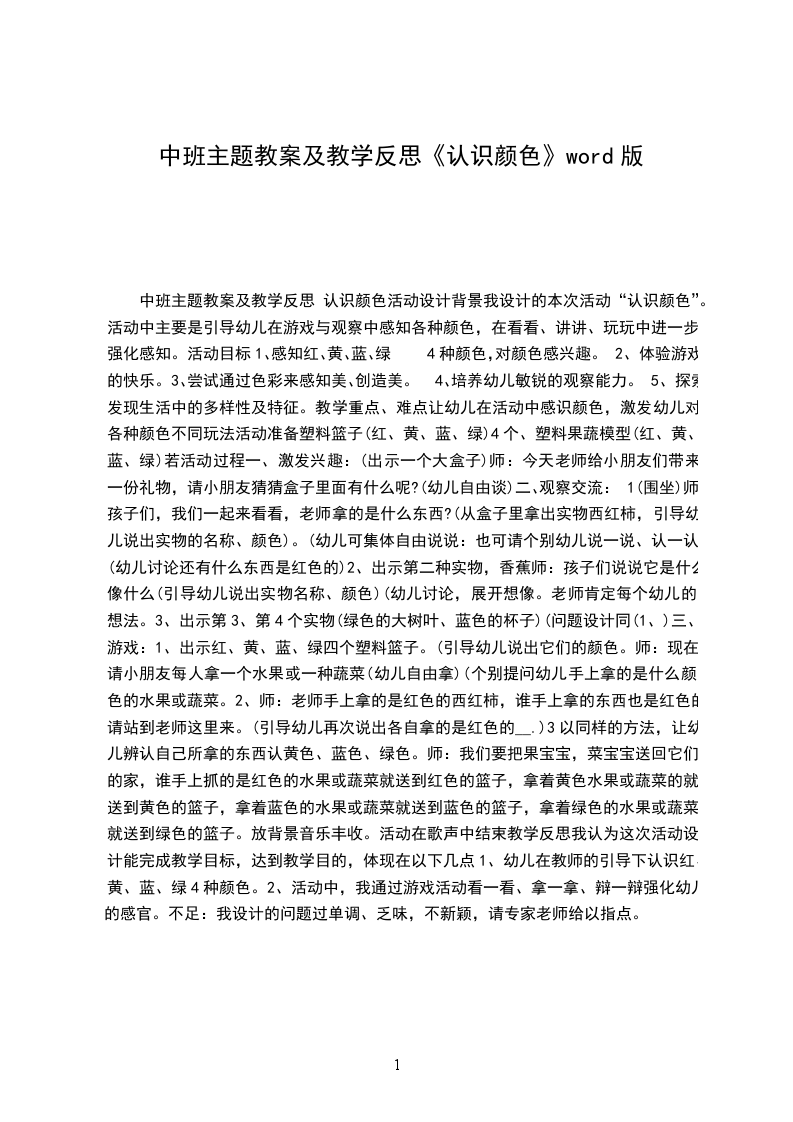 (2)大家一起检查,看看小朋友是否将玩具送对家。五.延伸活动请孩子们回家后,找一找家里有哪些物品是红色的,哪些是黄色的,哪些是蓝色的,并试着将它们分类放好。活动反思