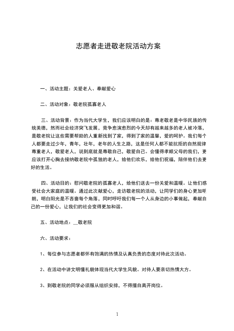 1、目的:慰问敬老院的孤寡老人,给他们送去一份关爱和温暖。在社会中体现华安一中形象以及学生的素质,达到社会效应。