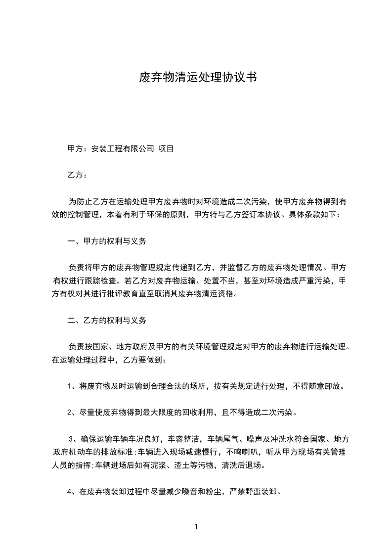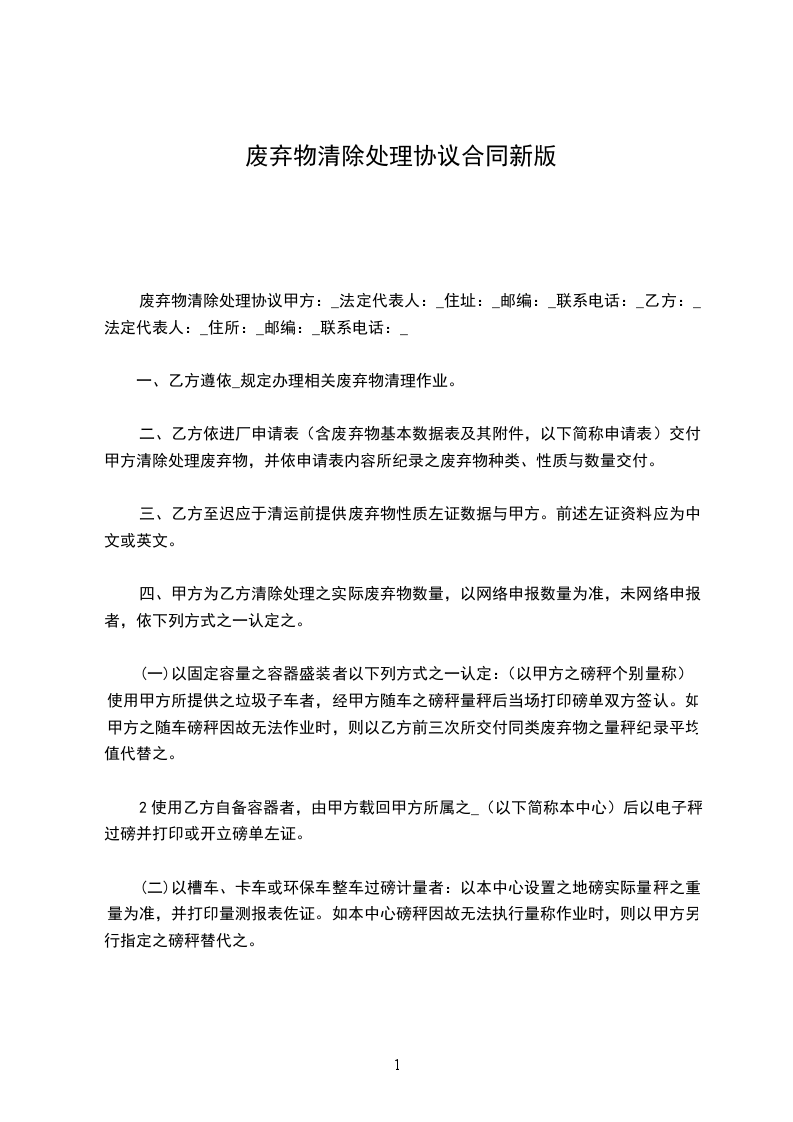 废弃物清除处理协议甲方:_法定代表人:_住址:_邮编:_联系电话:_乙方:_法定代表人:_住所:_邮编:_联系电话:_