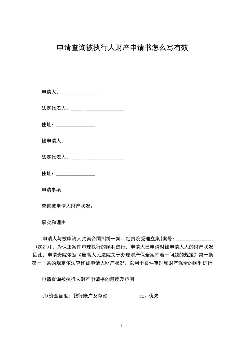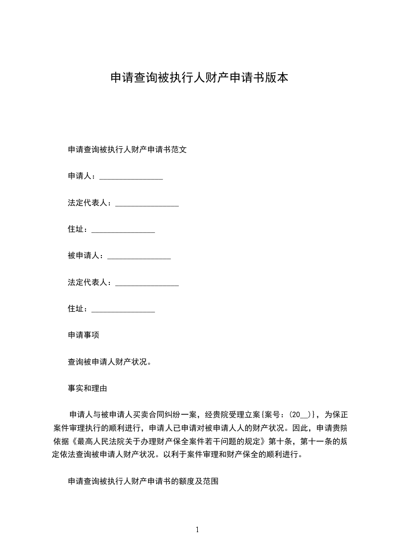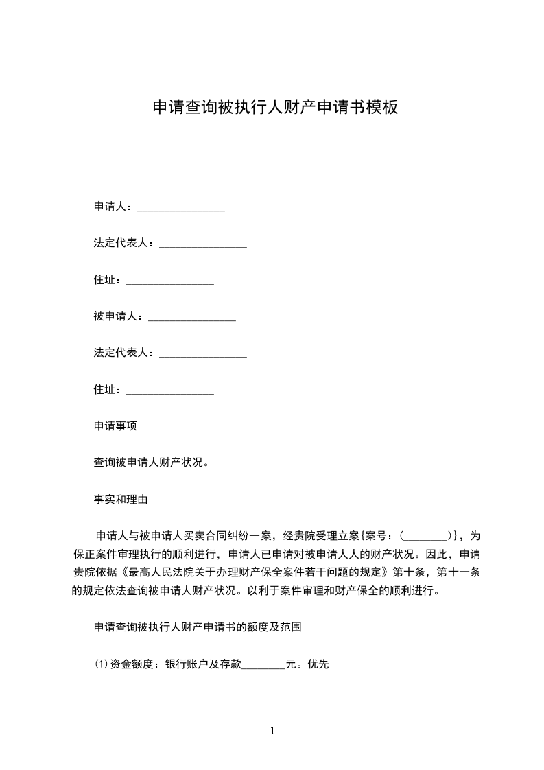 申请人与被申请人买卖合同纠纷一案,经贵院受理立案{案号:(________)},为保正案件审理执行的顺利进行,申请人已申请对被申请人人的财产状况。因此,申请贵院依据《最高人民法院关于办理财产保全案件若干问题的规定》第十条,第十一条的规定依法查询被申请人财产状况。以利于案件审理和财产保全的顺利进行。