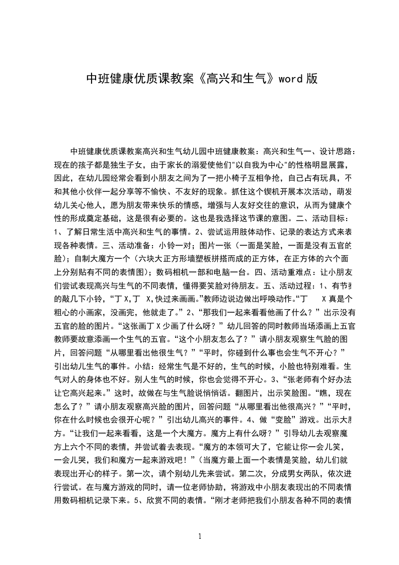 2、“那我们一起来看看他画了什么?”出示没有五官的脸的图片。“这张画丁X少画了什么呀?”幼儿回答的同时教师当场添画上五官,教师要故意添画一个生气的五官。“这个小朋友怎么了?”请小朋友观察生气脸的图片,回答问题“从哪里看出他很生气?”“平时,你碰到什么事也会生气不开心?”引出幼儿生气的事件。小结:经常生气是不好的,生气的时候,小脸也特别难看。生气对人的身体也不好。别人生气的时候,你也会觉得不开心。