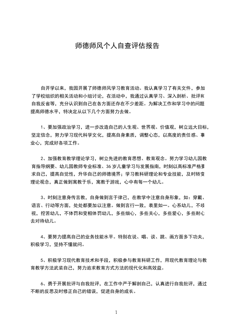 自开学以来,我园开展了师德师风学习教育活动。我认真学习了有关文件,参加了学校组织的相关活动和小组讨论,在活动中,我通过认真学习、深入剖析、批评和自我反省等,充分认识到自己在各方面还存在不少差距。为解决工作和学习中的问题,提高师德水平,特决定从以下几个方面努力去做。