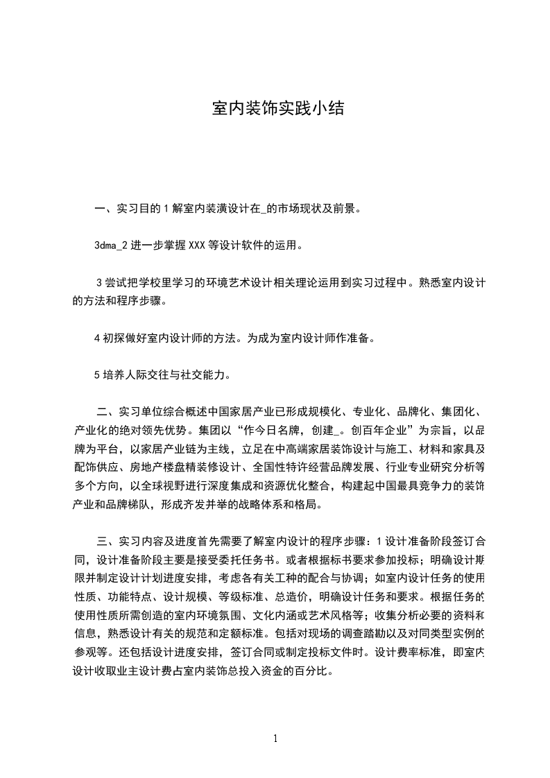 一、实习目的1解室内装潢设计在_的市场现状及前景。