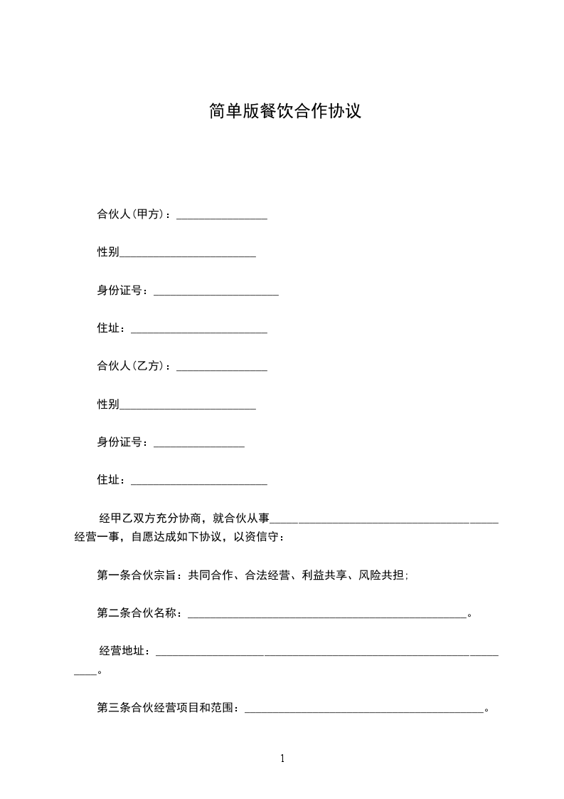 合伙人(甲方):________________________合伙人(乙方):________________________
