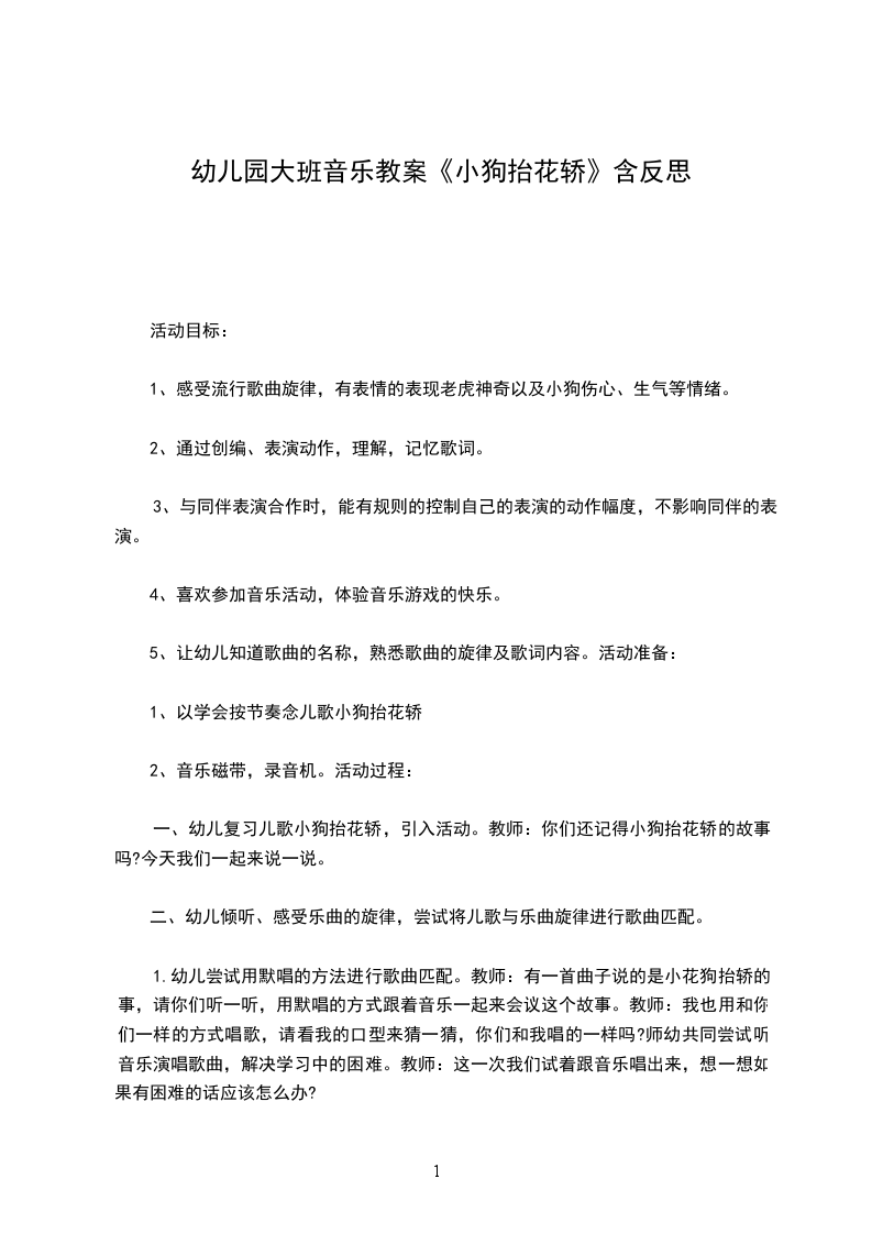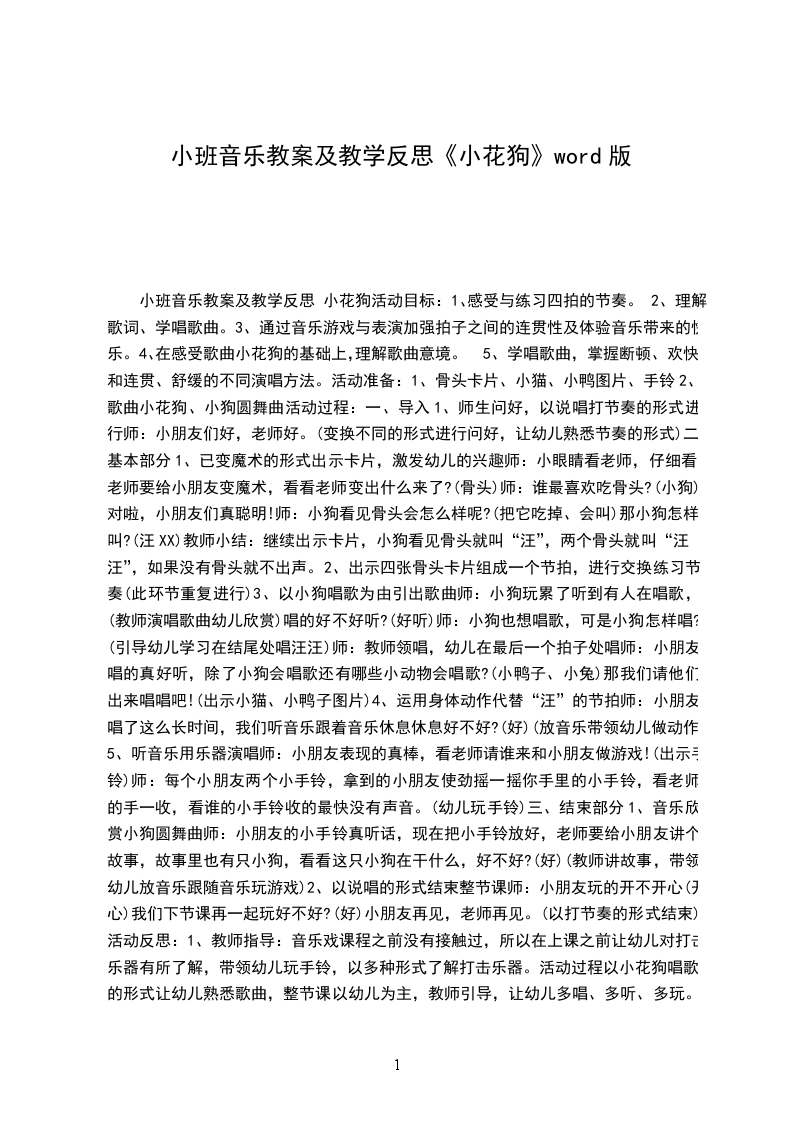 幼儿园小班音乐活动小花狗教案活动目标: