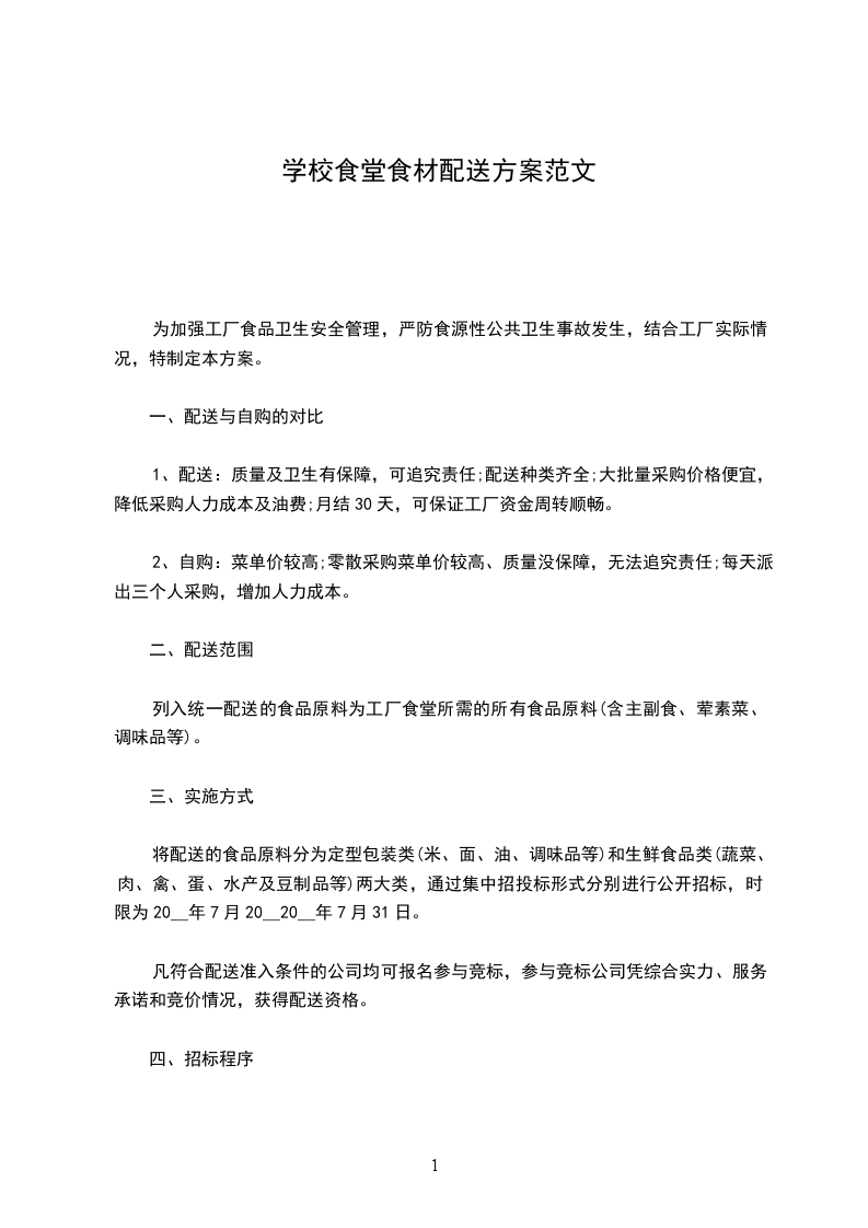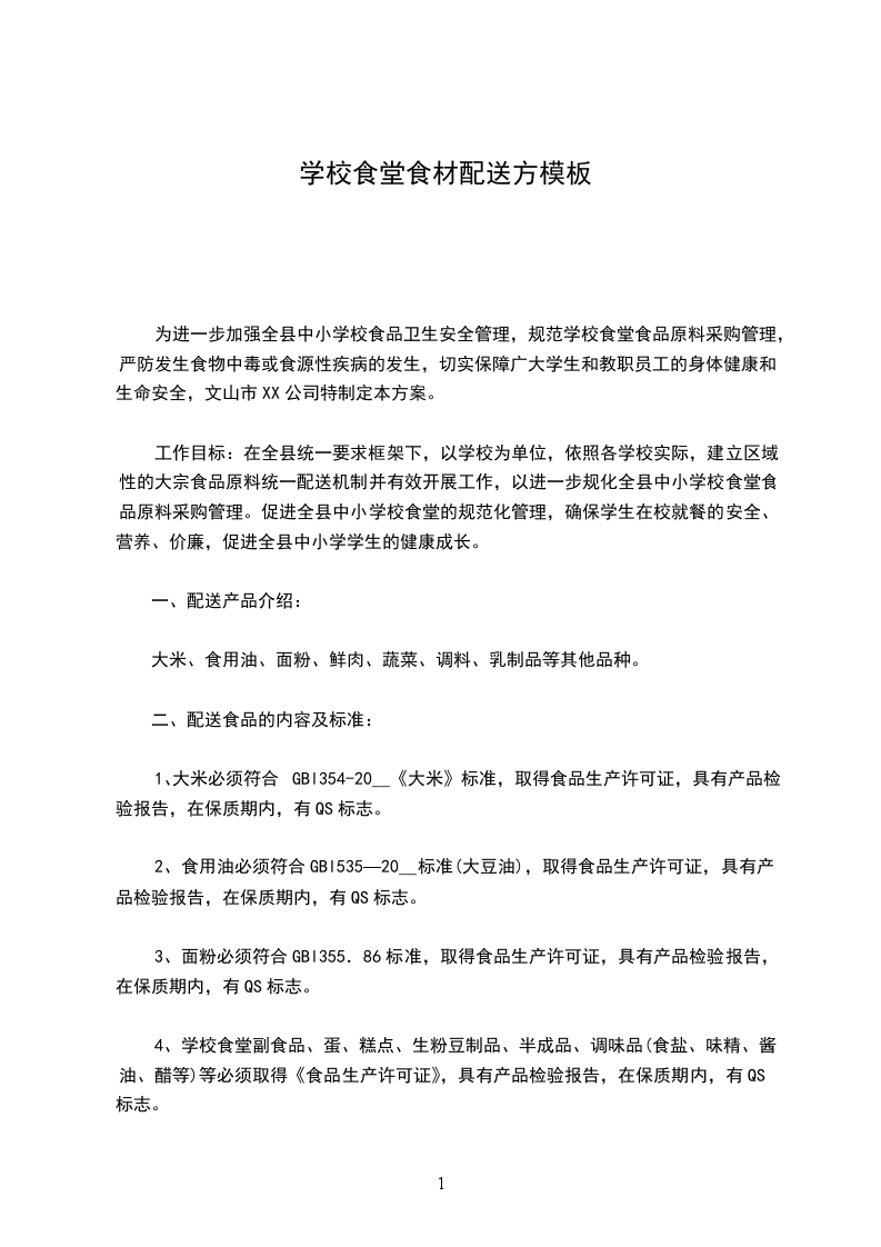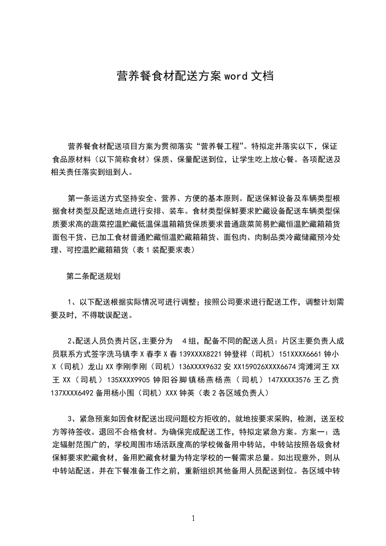 营养餐食材配送项目方案为贯彻落实“营养餐工程”。特拟定并落实以下,保证食品原材料(以下简称食材)保质、保量配送到位,让学生吃上放心餐。各项配送及相关责任落实到组到人。