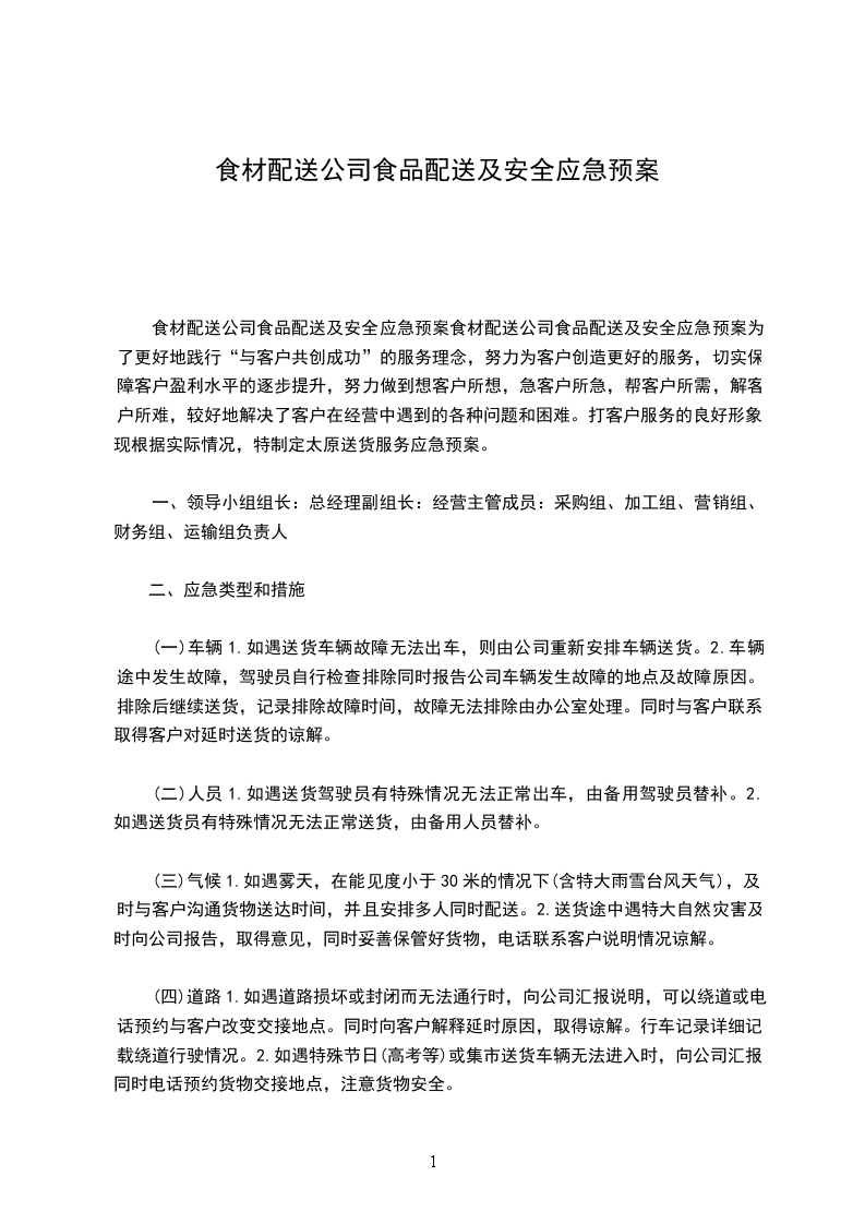 4、配送小组按照(配送表)要求配送到位。如有紧急情况启动紧急方案。就近点配送备用食材;