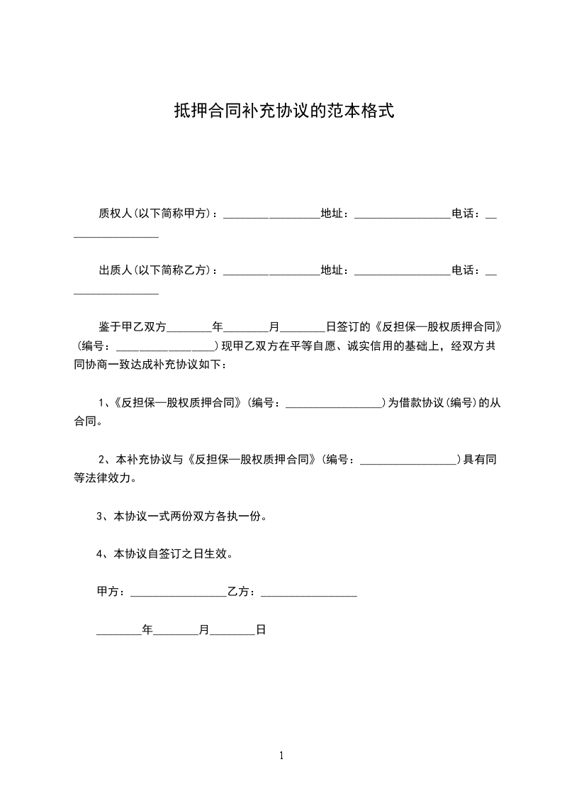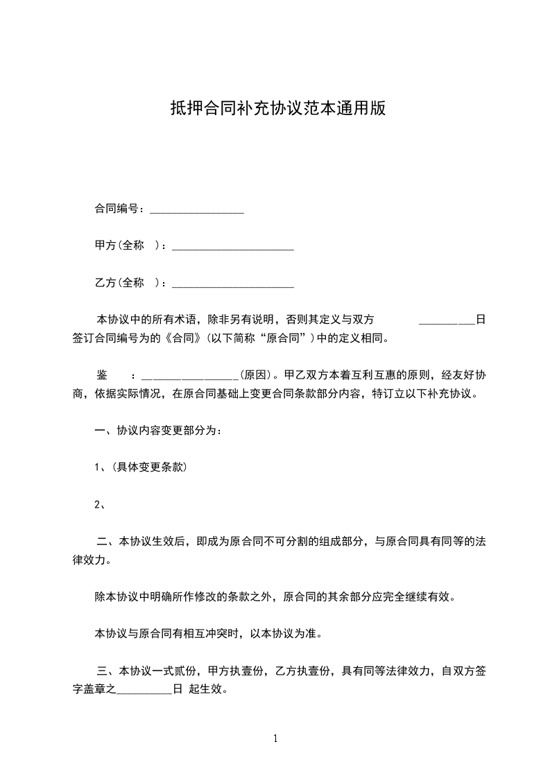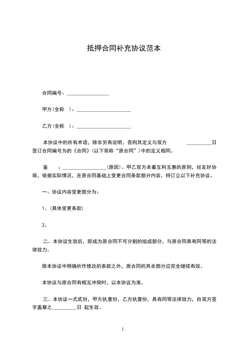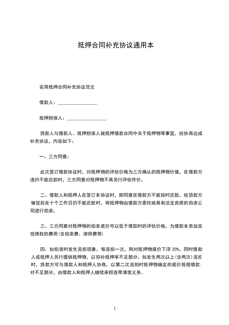 本合同甲乙双方因签订借款抵押合同,现双方协商一致就借款抵押合同达成补充协议如下: