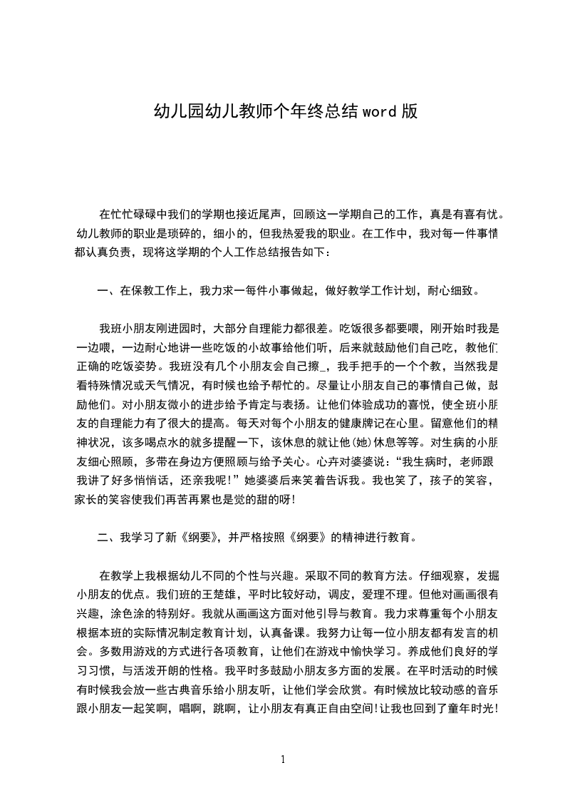 一个学期转眼就过去了,在幼儿园领导的指导下,在同事们得关心,支持和帮助下,使我学会了很多,也使我干好了我的本质工作,同时也取得了一定的成绩,在这里,我也该整理一下我的思绪,总结过去的工作经验,以使我更好地提高自己的工作水平。
