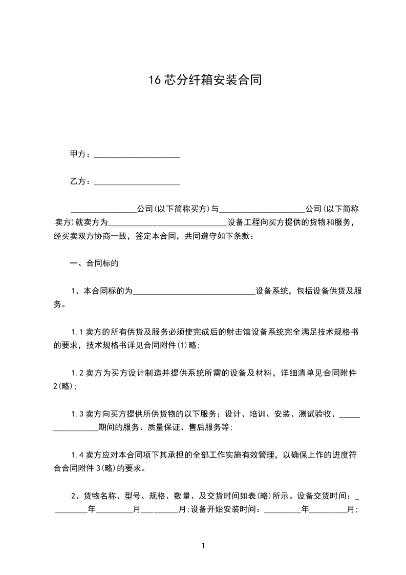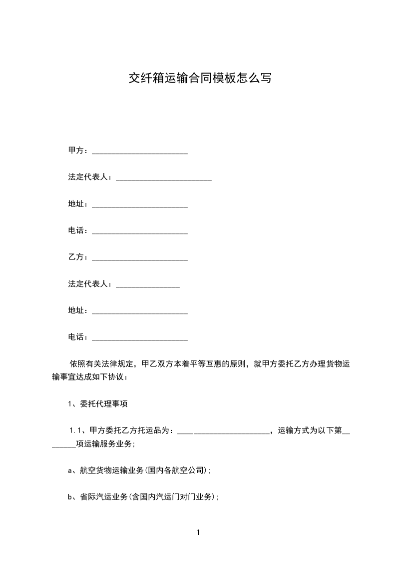 16芯分纤箱运输合同模板怎么写