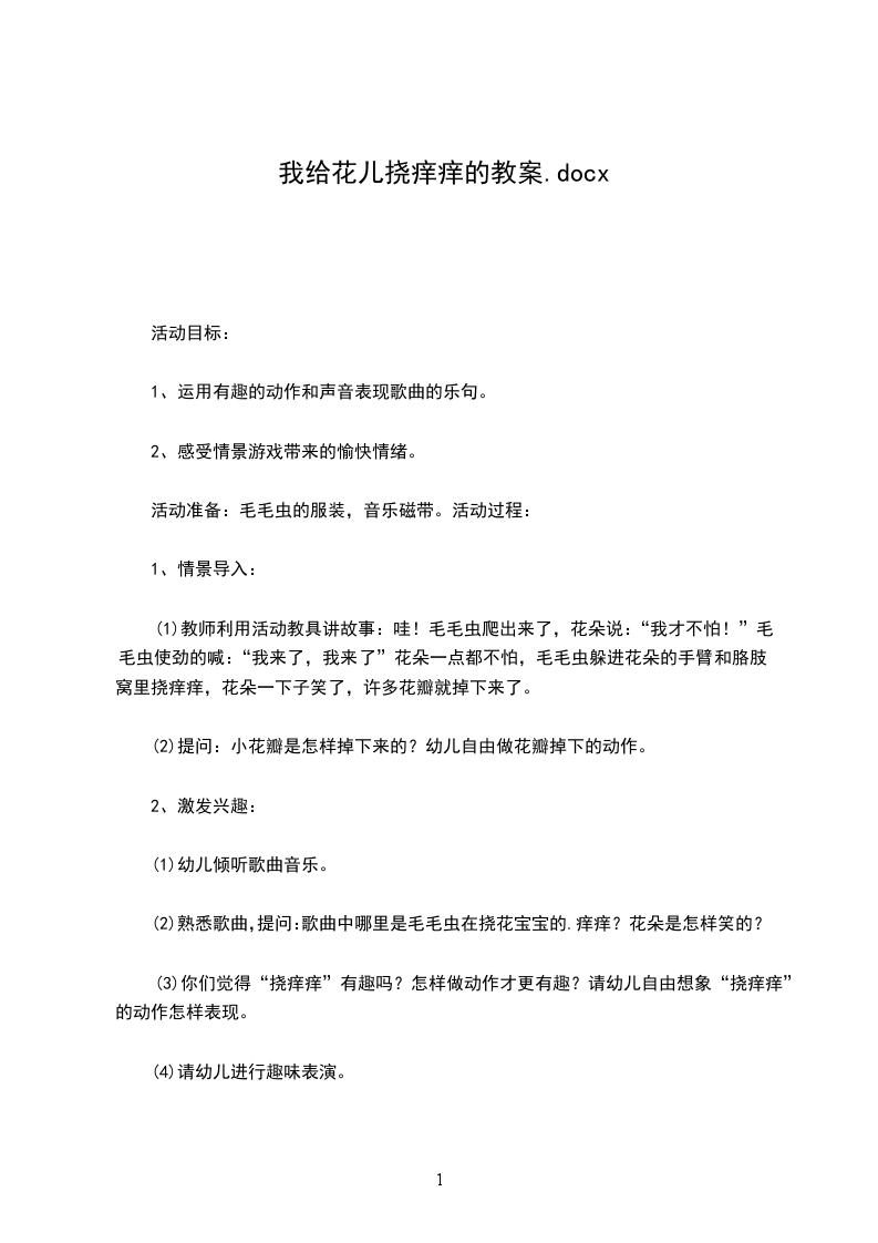 3、趣味游戏:教师扮演毛毛虫,幼儿扮演花朵,唱到“笑呀,笑起来”时,教师挠花朵的痒痒,幼儿自由笑,并作出花瓣落地的样子。(角色可互换)附歌曲:=XXX3毛毛虫扭扭扭扭呀扭出来呀扭扭扭扭扭扭扭563XXXX3653小花朵笑起来笑呀笑呀笑呀哈哈哈哈哈哈哈