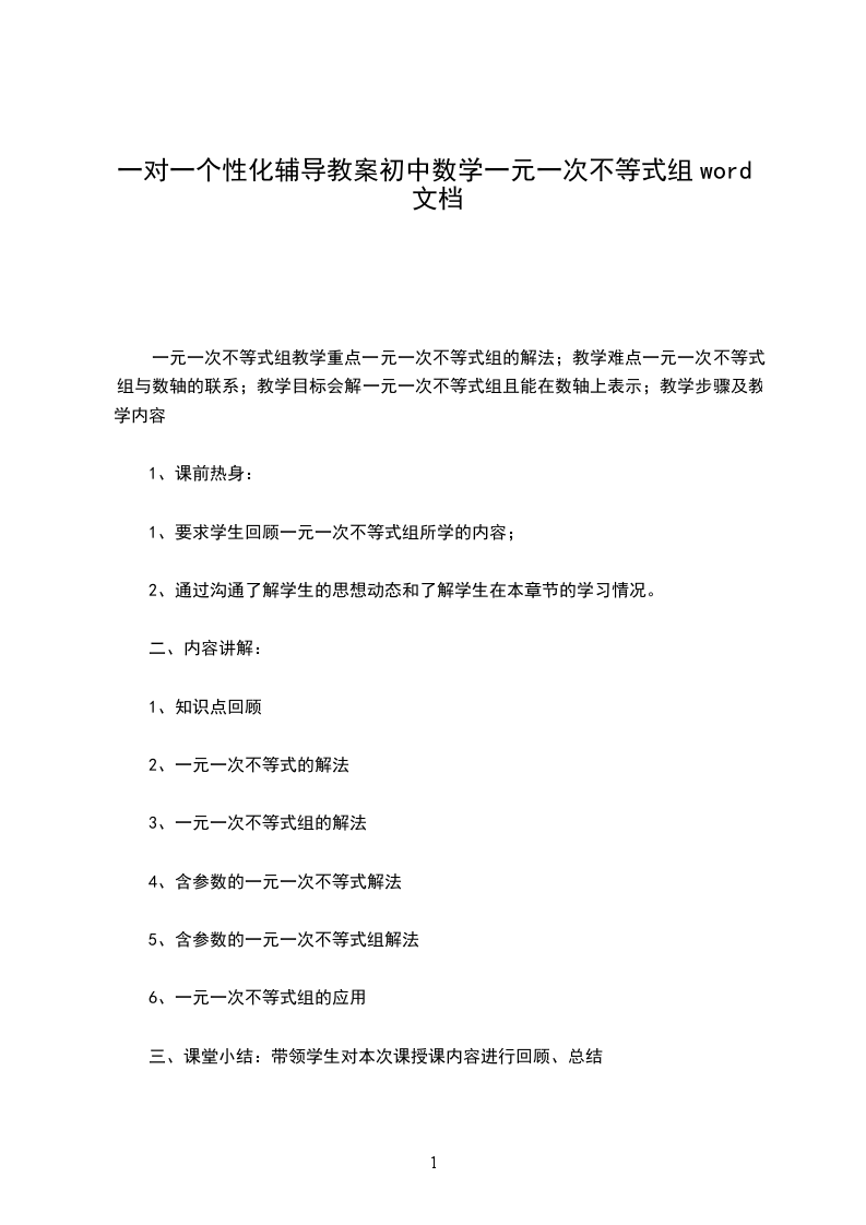 一元一次不等式组教学重点一元一次不等式组的解法;教学难点一元一次不等式组与数轴的联系;教学目标会解一元一次不等式组且能在数轴上表示;教学步骤及教学内容