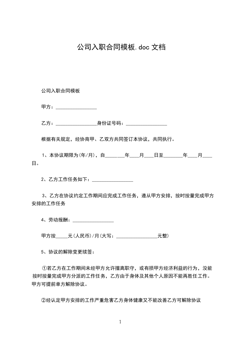 乙方(受聘人员)姓名:_________________性别:_________________民族:_________________